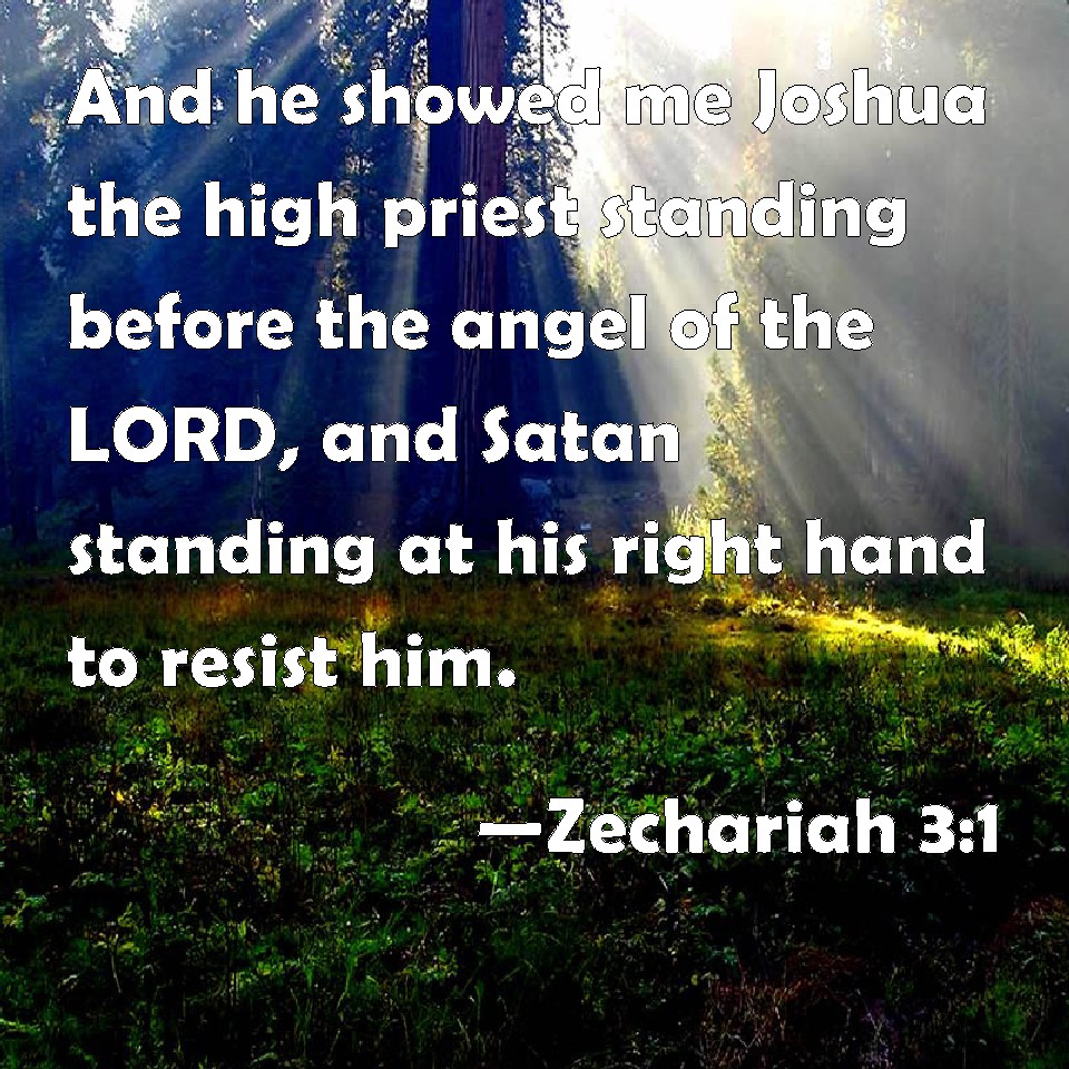 Zechariah 3:1 And he showed me Joshua the high priest standing before the angel of the LORD, and Satan standing at his right hand to resist him.