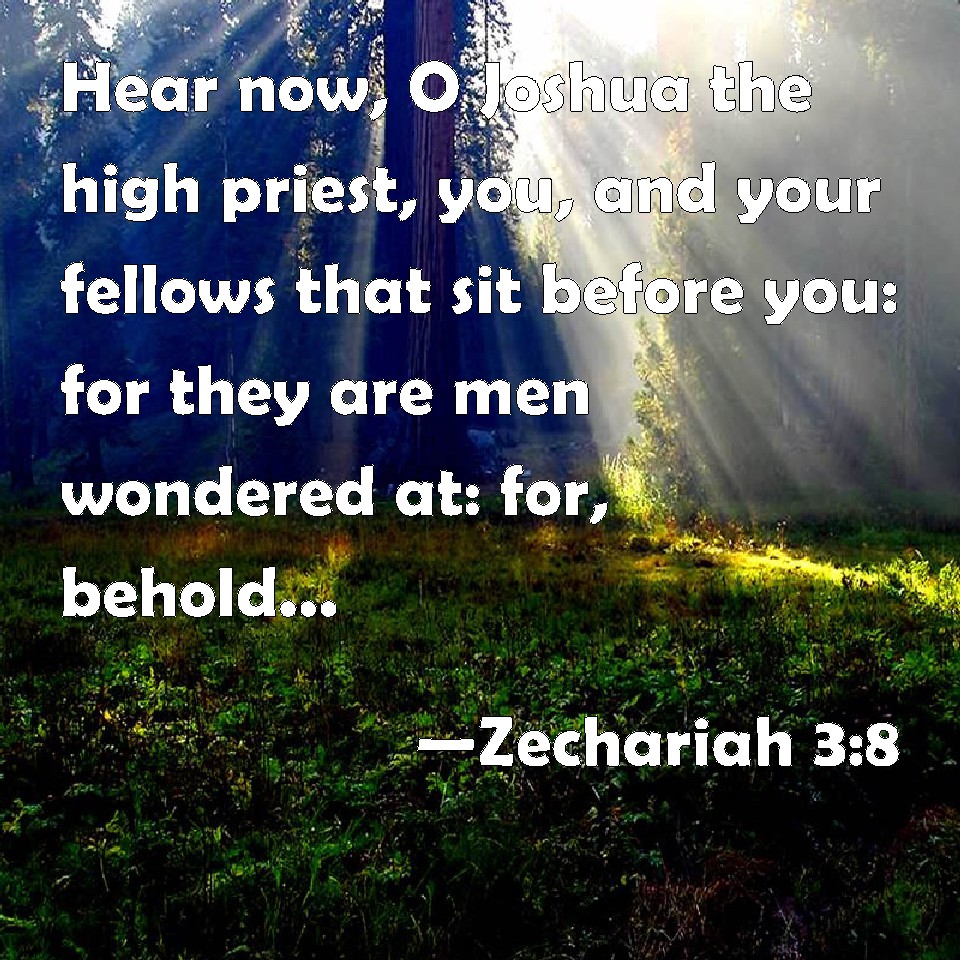 Choose a Background Zechariah 3:8 Hear now, O Joshua the high priest, you, and your fellows that sit before you: for they are men wondered at: for, behold, I will bring forth my servant the BRANCH. KJV: Hear now, O Joshua the high priest, thou, and thy fellows that sit before thee: for they are men wondered at: for, behold, I will bring forth my servant the BRANCH. DRB: Hear, O Jesus thou high priest, then and thy friends that dwell before thee, for they are portending men: for behold I WILL BRING MY SERVANT THE ORIENT. DBT: Hear now, Joshua the high priest, thou and thy fellows that sit before thee for they are men of portent for behold, I will bring forth my servant the Branch. ERV: Hear now, O Joshua the high priest, thou and thy fellows that sit before thee; for they are men which are a sign: for, behold, I will bring forth my servant the Branch. WBT: Hear now, O Joshua the high priest, thou and thy fellows that sit before thee: for they are men wondered at: for behold, I will bring forth my servant the BRANCH. WEB: Hear now, Joshua the high priest, you and your fellows who sit before you; for they are men who are a sign: for, behold, I will bring forth my servant, the Branch. YLT: Hear, I pray thee, Joshua, the high priest, Thou and thy companions sitting before thee, (For men of type are they,) For lo, I am bringing in My servant — a Shoot.Links Zechariah 3:8 NIV • Zechariah 3:8 NLT • Zechariah 3:8 ESV • Zechariah 3:8 NASB • Zechariah 3:8 KJV • Zechariah 3:8 Interlinear • Zechariah 3:8 Commentaries • Zechariah 3:8 Parallel Texts • Zechariah 3:8 Bible Apps • Zechariah 3:8 Parallel • Bible Hub |