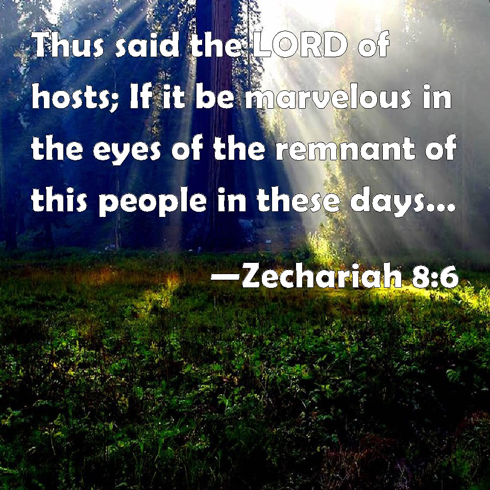 Zechariah 8:6 Thus said the LORD of hosts; If it be marvelous in the eyes of the remnant of this people in these days, should it also be marvelous in my eyes? said the LORD of hosts.