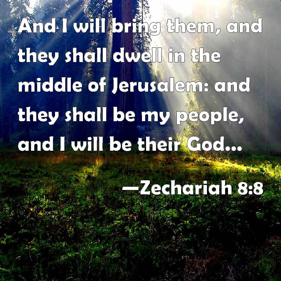 Choose a Background Zechariah 8:8 And I will bring them, and they shall dwell in the middle of Jerusalem: and they shall be my people, and I will be their God, in truth and in righteousness. KJV: And I will bring them, and they shall dwell in the midst of Jerusalem: and they shall be my people, and I will be their God, in truth and in righteousness. DRB: And I will bring them, and they shall dwell in the midst of Jerusalem: and they shall be my people, and I will be their God in truth and in justice. DBT: and I will bring them, and they shall dwell in the midst of Jerusalem; and they shall be my people, and I will be their God, in truth and in righteousness. ERV: and I will bring them, and they shall dwell in the midst of Jerusalem; and they shall be my people, and I will be their God, in truth and in righteousness. WBT: And I will bring them, and they shall dwell in the midst of Jerusalem: and they shall be my people, and I will be their God, in truth and in righteousness. WEB: and I will bring them, and they will dwell in the midst of Jerusalem; and they will be my people, and I will be their God, in truth and in righteousness." YLT: And I have brought them in, They have dwelt in the midst of Jerusalem, And they have been to Me for a people, And I am to them for God, In truth and in righteousness.Links Zechariah 8:8 NIV • Zechariah 8:8 NLT • Zechariah 8:8 ESV • Zechariah 8:8 NASB • Zechariah 8:8 KJV • Zechariah 8:8 Interlinear • Zechariah 8:8 Commentaries • Zechariah 8:8 Parallel Texts • Zechariah 8:8 Bible Apps • Zechariah 8:8 Parallel • Bible Hub |