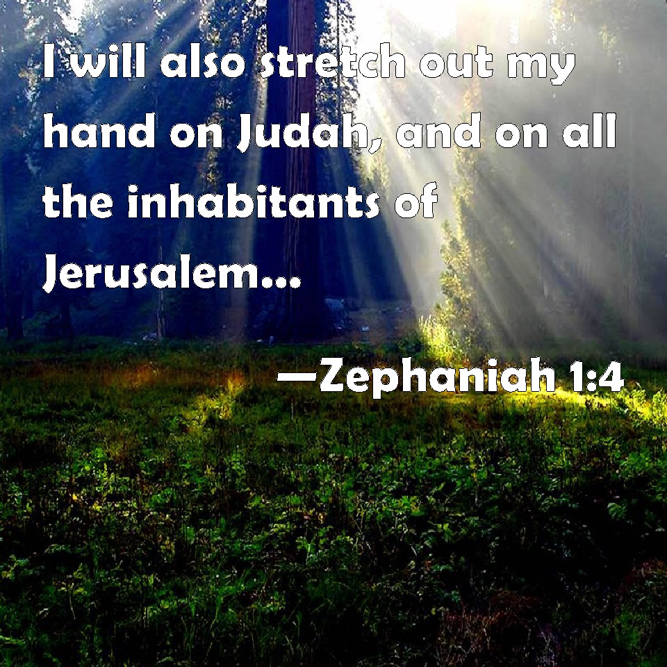 Choose a Background Zephaniah 1:4 I will also stretch out my hand on Judah, and on all the inhabitants of Jerusalem; and I will cut off the remnant of Baal from this place, and the name of the Chemarims with the priests; KJV: I will also stretch out mine hand upon Judah, and upon all the inhabitants of Jerusalem; and I will cut off the remnant of Baal from this place, and the name of the Chemarims with the priests; DRB: And I will stretch out my hand upon Juda, and upon all the inhabitants of Jerusalem: and I will destroy out of this place the remnant of Baal, and the names of the wardens of the temples with the priests: DBT: And I will stretch forth my hand upon Judah, and upon all the inhabitants of Jerusalem; and I will cut off the remnant of Baal from this place, the name of the Chemarim with the priests; ERV: And I will stretch out mine hand upon Judah, and upon all the inhabitants of Jerusalem; and I will cut off the remnant of Baal from this place, and the name of the Chemarim with the priests; WBT: I will also stretch out my hand upon Judah and upon all the inhabitants of Jerusalem; and I will cut off the remnant of Baal from this place, and the name of the Chemarims with the priests; WEB: I will stretch out my hand against Judah, and against all the inhabitants of Jerusalem. I will cut off the remnant of Baal from this place: the name of the idolatrous and pagan priests, YLT: And stretched out My hand against Judah, And against all inhabiting Jerusalem, And cut off from this place the remnant of Baal, The name of the idolatrous priests, with the priests,Links Zephaniah 1:4 NIV • Zephaniah 1:4 NLT • Zephaniah 1:4 ESV • Zephaniah 1:4 NASB • Zephaniah 1:4 KJV • Zephaniah 1:4 Interlinear • Zephaniah 1:4 Commentaries • Zephaniah 1:4 Parallel Texts • Zephaniah 1:4 Bible Apps • Zephaniah 1:4 Parallel • Bible Hub |