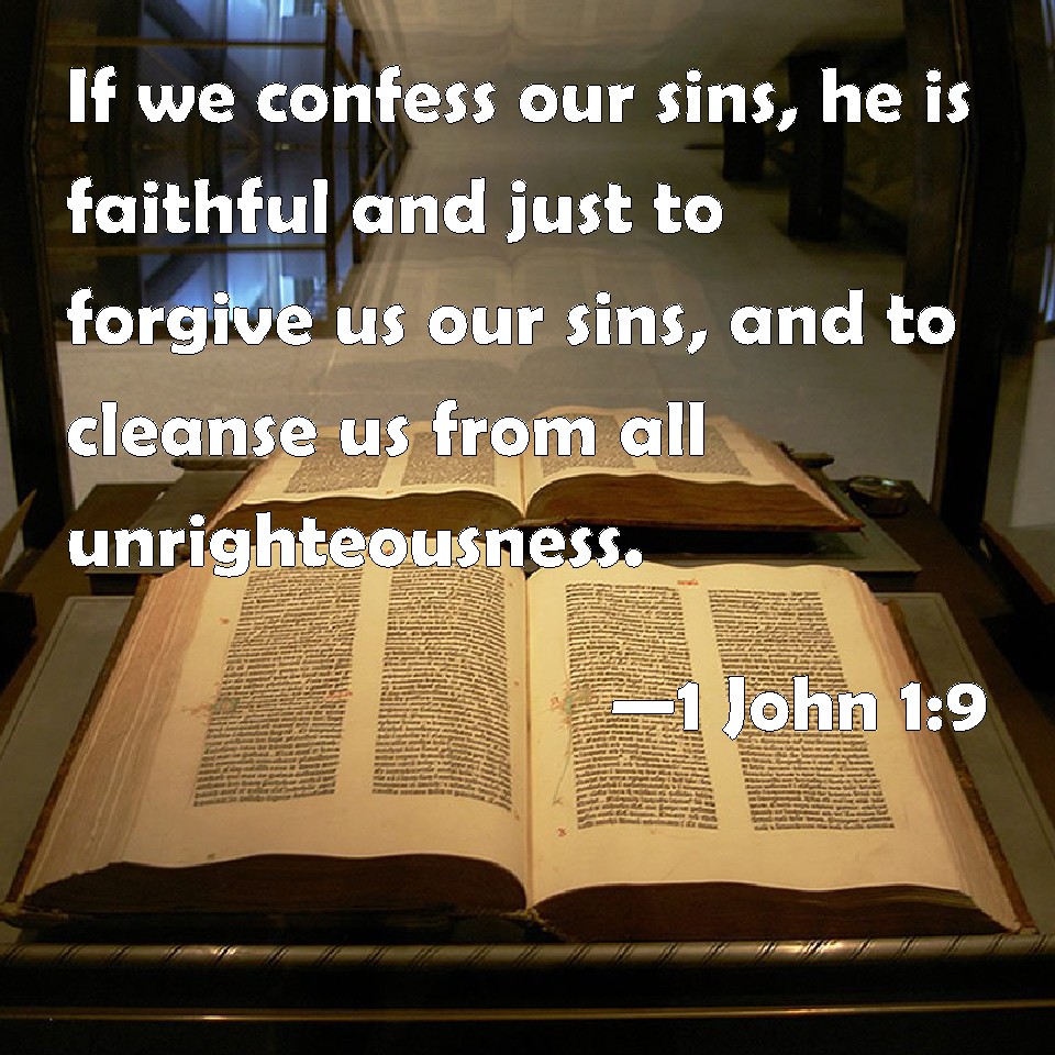 Choose a Background 1 John 1:9 If we confess our sins, he is faithful and just to forgive us our sins, and to cleanse us from all unrighteousness. KJV: If we confess our sins, he is faithful and just to forgive us our sins, and to cleanse us from all unrighteousness. DRB: If we confess our sins, he is faithful and just, to forgive us our sins, and to cleanse us from all iniquity. DBT: If we confess our sins, he is faithful and righteous to forgive us our sins, and cleanse us from all unrighteousness. ERV: If we confess our sins, he is faithful and righteous to forgive us our sins, and to cleanse us from all unrighteousness. WBT: If we confess our sins, he is faithful and just to forgive us our sins, and to cleanse us from all unrighteousness. WEB: If we confess our sins, he is faithful and righteous to forgive us the sins, and to cleanse us from all unrighteousness. YLT: if we may confess our sins, stedfast He is and righteous that He may forgive us the sins, and may cleanse us from every unrighteousness;Links 1 John 1:9 NIV • 1 John 1:9 NLT • 1 John 1:9 ESV • 1 John 1:9 NASB • 1 John 1:9 KJV • 1 John 1:9 Interlinear • 1 John 1:9 Commentaries • 1 John 1:9 Parallel Texts • 1 John 1:9 Bible Apps • 1 John 1:9 Parallel • Bible Hub |