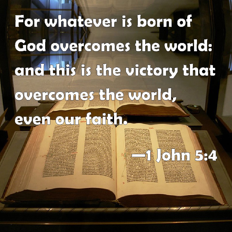 1 John 5:4 For whatever is born of God overcomes the world: and this is the victory that overcomes the world, even our faith.