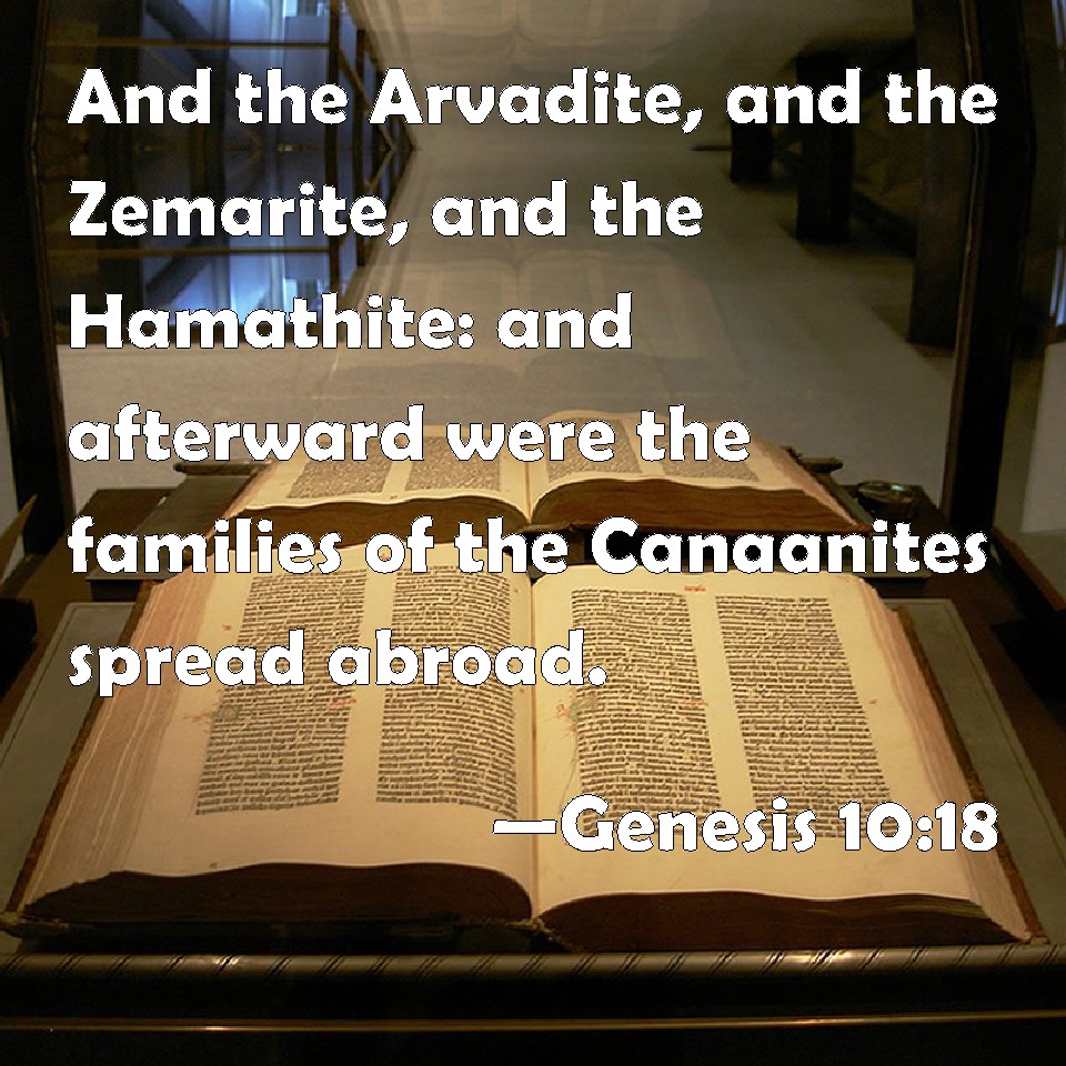 Choose a Background Genesis 10:18 And the Arvadite, and the Zemarite, and the Hamathite: and afterward were the families of the Canaanites spread abroad. KJV: And the Arvadite, and the Zemarite, and the Hamathite: and afterward were the families of the Canaanites spread abroad. DRB: And the Aradian, the Samarite, and the Hamathite: and afterwards the families of the Chanaanites were spread abroad. DBT: and the Arvadite, and the Zemarite, and the Hamathite. And afterwards the families of the Canaanites spread themselves abroad. ERV: and the Arvadite, and the Zemarite, and the Hamathite: and afterward were the families of the Canaanite spread abroad. WBT: And the Arvadite, and the Zemarite, and the Hamathite: and afterward were the families of the Canaanites dispersed. WEB: the Arvadite, the Zemarite, and the Hamathite. Afterward the families of the Canaanites were spread abroad. YLT: and the Arvadite, and the Zemarite, and the Hamathite; and afterwards have the families of the Canaanite been scattered.Links Genesis 10:18 NIV • Genesis 10:18 NLT • Genesis 10:18 ESV • Genesis 10:18 NASB • Genesis 10:18 KJV • Genesis 10:18 Interlinear • Genesis 10:18 Commentaries • Genesis 10:18 Parallel Texts • Genesis 10:18 Bible Apps • Genesis 10:18 Parallel • Bible Hub |