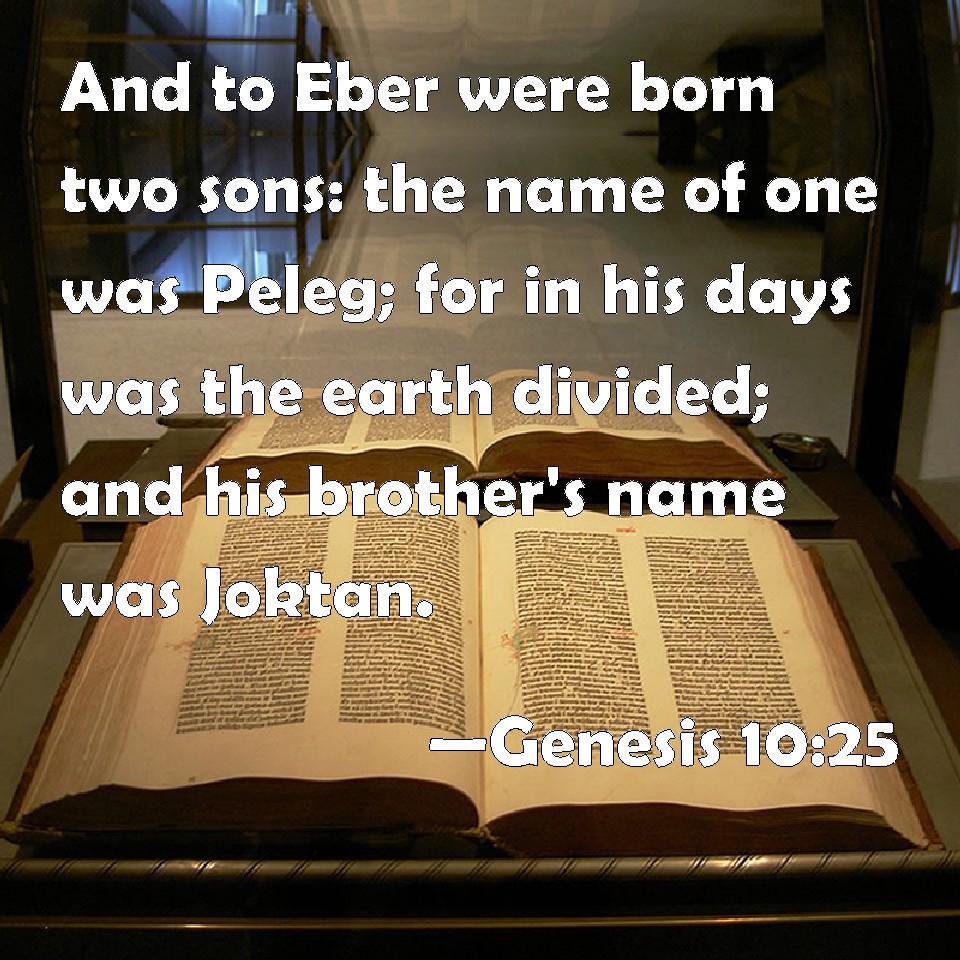 Genesis 10:25 And to Eber were born two sons: the name of one was Peleg; for in his days was the earth divided; and his brother's name was Joktan.