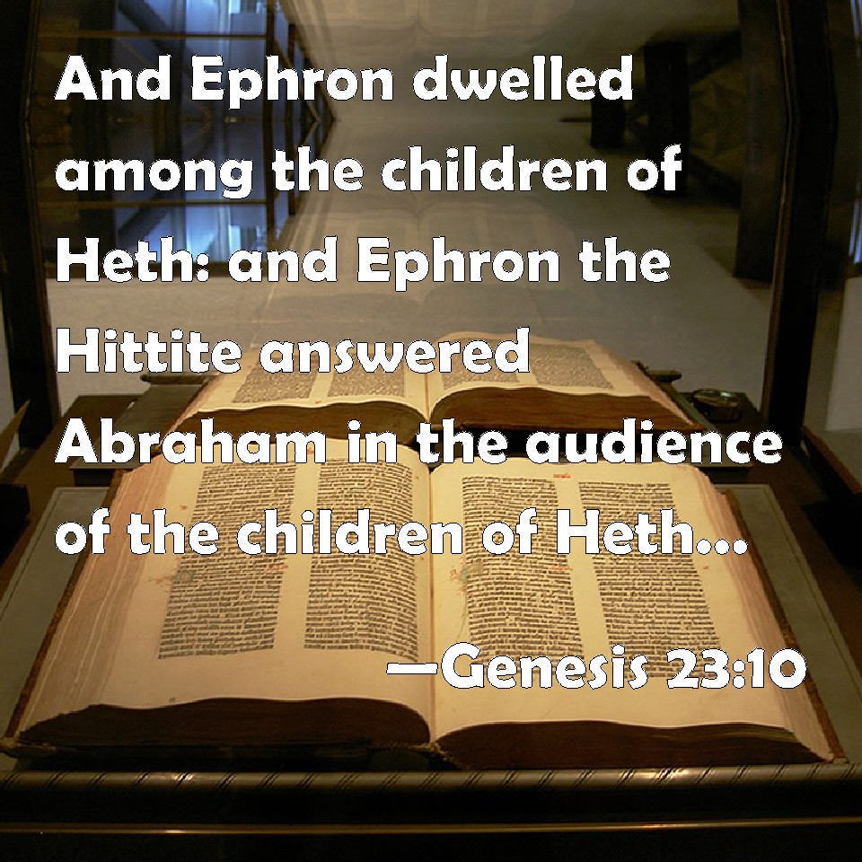 Choose a Background Genesis 23:10 And Ephron dwelled among the children of Heth: and Ephron the Hittite answered Abraham in the audience of the children of Heth, even of all that went in at the gate of his city, saying, KJV: And Ephron dwelt among the children of Heth: and Ephron the Hittite answered Abraham in the audience of the children of Heth, even of all that went in at the gate of his city, saying, DRB: Now Ephron dwelt in the midst of the children of Heth. And Ephron made answer to Abraham in the hearing of all that went in at the gate of the city, saying: DBT: And Ephron was dwelling among the sons of Heth. And Ephron the Hittite answered Abraham, in the ears of the sons of Heth, even of all that went in at the gate of his city, saying, ERV: Now Ephron was sitting in the midst of the children of Heth: and Ephron the Hittite answered Abraham in the audience of the children of Heth, even of all that went in at the gate of his city, saying, WBT: And Ephron dwelt among the children of Heth. And Ephron the Hittite answered Abraham in the audience of the children of Heth, of all that entered the gates of his city, saying, WEB: Now Ephron was sitting in the middle of the children of Heth. Ephron the Hittite answered Abraham in the hearing of the children of Heth, even of all who went in at the gate of his city, saying, YLT: And Ephron is sitting in the midst of the sons of Heth, and Ephron the Hittite answereth Abraham in the ears of the sons of Heth, of all those entering the gate of his city, saying,Links Genesis 23:10 NIV • Genesis 23:10 NLT • Genesis 23:10 ESV • Genesis 23:10 NASB • Genesis 23:10 KJV • Genesis 23:10 Interlinear • Genesis 23:10 Commentaries • Genesis 23:10 Parallel Texts • Genesis 23:10 Bible Apps • Genesis 23:10 Parallel • Bible Hub |