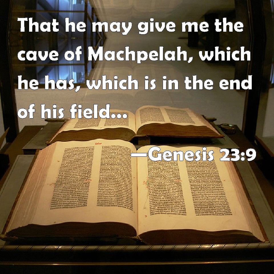 Choose a Background Genesis 23:9 That he may give me the cave of Machpelah, which he has, which is in the end of his field; for as much money as it is worth he shall give it me for a possession of a burial plot among you. KJV: That he may give me the cave of Machpelah, which he hath, which is in the end of his field; for as much money as it is worth he shall give it me for a possession of a buryingplace amongst you. DRB: That he may give me the double cave, which he hath in the end of his field: for as much money as it is worth he shall give it me before you, for a possession of a buryingplace. DBT: that he may give me the cave of Machpelah, which is his, which is at the end of his field; for the full money let him give it to me amongst you for a possession of a sepulchre. ERV: that he may give me the cave of Machpelah, which he hath, which is in the end of his field; for the full price let him give it to me in the midst of you for a possession of a buryingplace. WBT: That he may give me the cave of Machpelah, which he hath, which is in the end of his field; for as much money as it is worth he shall give it me, for a possession of a burying-place among you. WEB: that he may give me the cave of Machpelah, which he has, which is in the end of his field. For the full price let him give it to me among you for a possession of a burying-place." YLT: and he giveth to me the cave of Machpelah, which he hath, which is in the extremity of his field; for full money doth he give it to me, in your midst, for a possession of a burying-place.'Links Genesis 23:9 NIV • Genesis 23:9 NLT • Genesis 23:9 ESV • Genesis 23:9 NASB • Genesis 23:9 KJV • Genesis 23:9 Interlinear • Genesis 23:9 Commentaries • Genesis 23:9 Parallel Texts • Genesis 23:9 Bible Apps • Genesis 23:9 Parallel • Bible Hub |