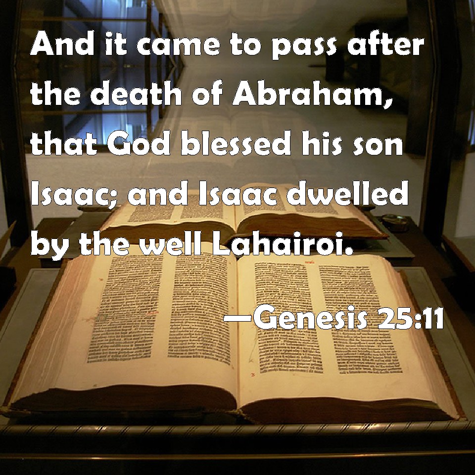 Choose a Background Genesis 25:11 And it came to pass after the death of Abraham, that God blessed his son Isaac; and Isaac dwelled by the well Lahairoi. KJV: And it came to pass after the death of Abraham, that God blessed his son Isaac; and Isaac dwelt by the well Lahairoi. DRB: And after his death, God blessed Isaac his son, who dwelt by the well named Of the living and seeing. DBT: And it came to pass after the death of Abraham, that God blessed his son Isaac. And Isaac dwelt at Beer-lahai-roi. ERV: And it came to pass after the death of Abraham, that God blessed Isaac his son; and Isaac dwelt by Beer-lahai-roi. WBT: And it came to pass after the death of Abraham, that God blessed his son Isaac: and Isaac dwelt by the well Lahai-roi. WEB: It happened after the death of Abraham that God blessed Isaac, his son. Isaac lived by Beer Lahai Roi. YLT: And it cometh to pass after the death of Abraham, that God blesseth Isaac his son; and Isaac dwelleth by the Well of the Living One, my Beholder.Links Genesis 25:11 NIV • Genesis 25:11 NLT • Genesis 25:11 ESV • Genesis 25:11 NASB • Genesis 25:11 KJV • Genesis 25:11 Interlinear • Genesis 25:11 Commentaries • Genesis 25:11 Parallel Texts • Genesis 25:11 Bible Apps • Genesis 25:11 Parallel • Bible Hub |