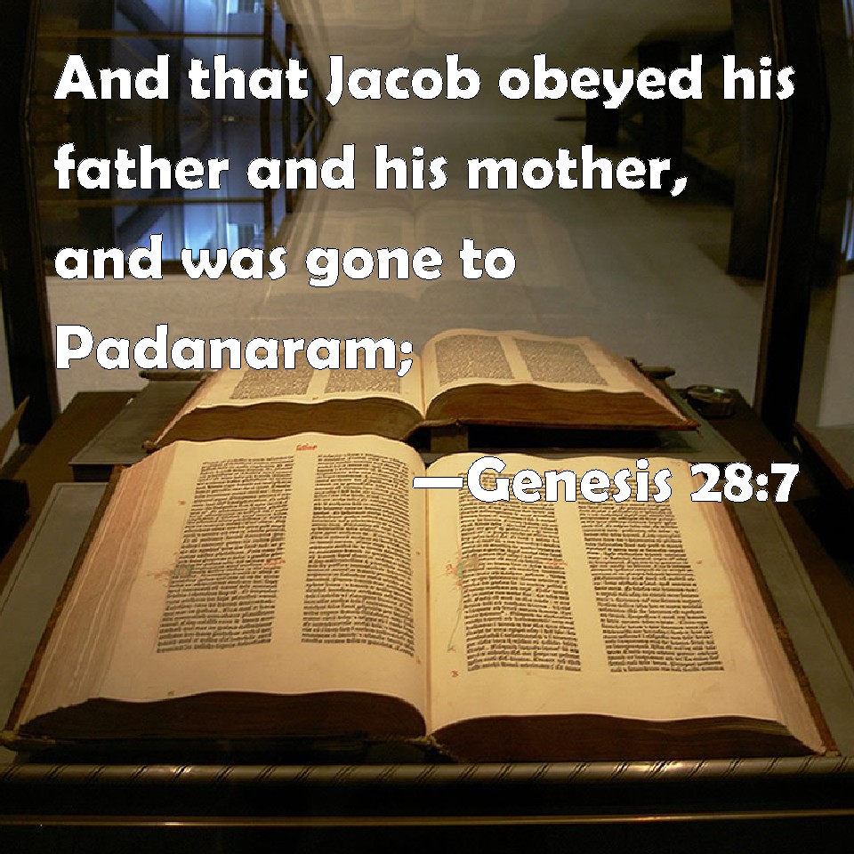 Genesis 28:7 And that Jacob obeyed his father and his mother, and was gone to Padanaram;