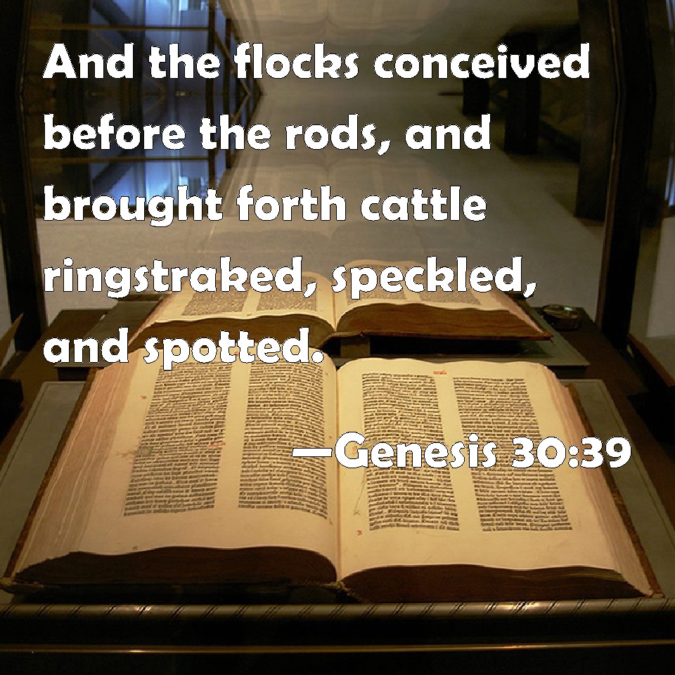 Choose a Background Genesis 30:39 And the flocks conceived before the rods, and brought forth cattle ringstraked, speckled, and spotted. KJV: And the flocks conceived before the rods, and brought forth cattle ringstraked, speckled, and spotted. DRB: And it came to pass that in the very heat of coition, the sheep beheld the rods, and brought forth spotted, and of divers colours, and speckled. DBT: And the flock was ardent before the rods; and the flock brought forth ringstraked, speckled, and spotted. ERV: And the flocks conceived before the rods, and the flocks brought forth ringstraked, speckled, and spotted. WBT: And the flocks conceived before the rods, and brought forth cattle ring-streaked, speckled, and spotted. WEB: The flocks conceived before the rods, and the flocks brought forth streaked, speckled, and spotted. YLT: and the flocks conceive at the rods, and the flock beareth ring-streaked, speckled, and spotted ones.Links Genesis 30:39 NIV • Genesis 30:39 NLT • Genesis 30:39 ESV • Genesis 30:39 NASB • Genesis 30:39 KJV • Genesis 30:39 Interlinear • Genesis 30:39 Commentaries • Genesis 30:39 Parallel Texts • Genesis 30:39 Bible Apps • Genesis 30:39 Parallel • Bible Hub |