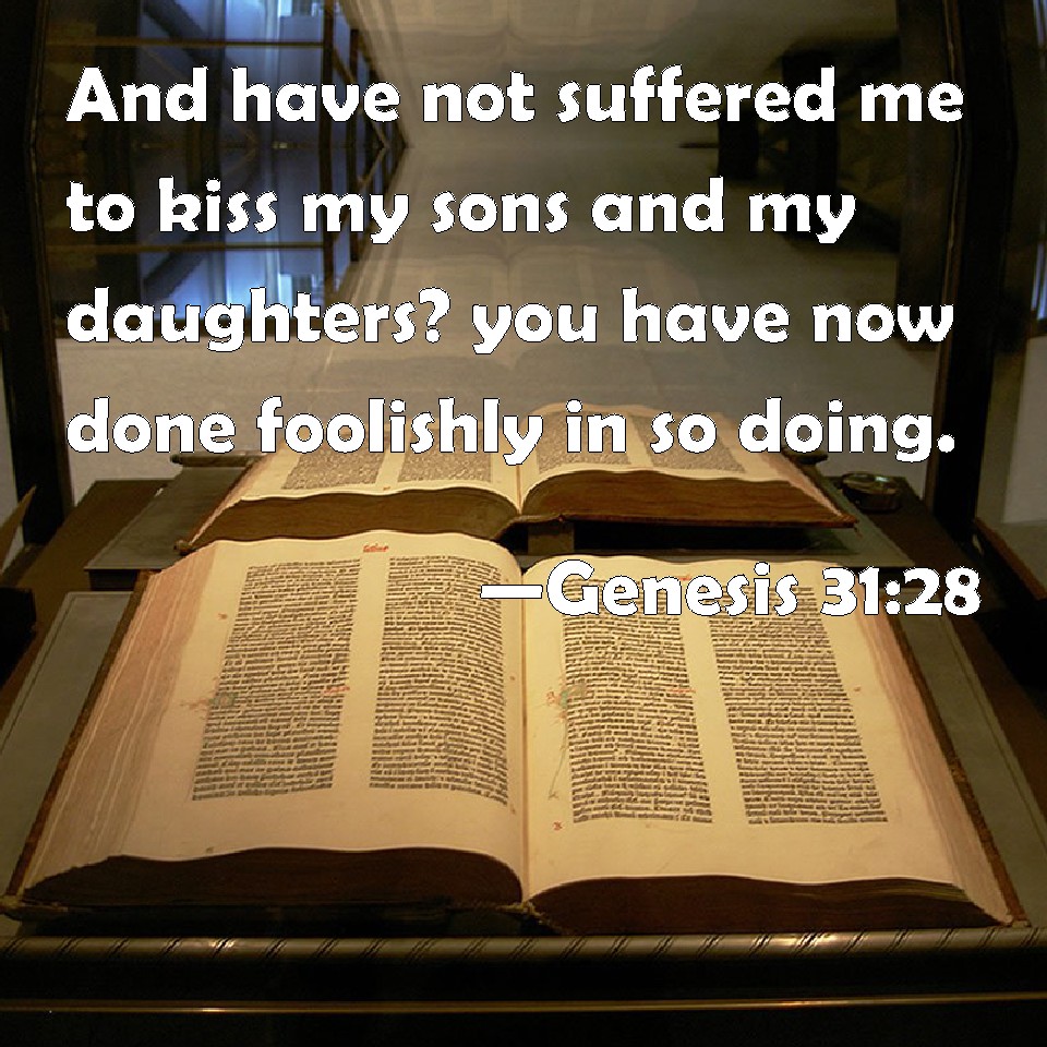 Genesis 31:28 And have not suffered me to kiss my sons and my daughters? you have now done foolishly in so doing.