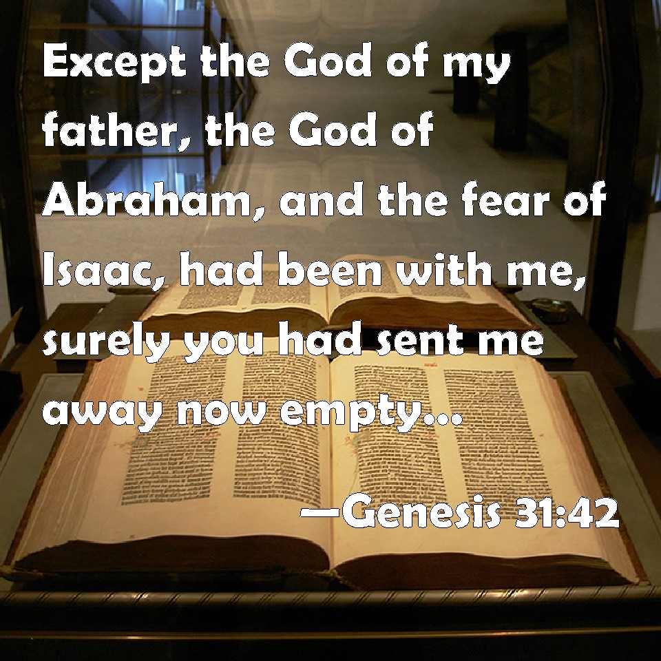 Choose a Background Genesis 31:42 Except the God of my father, the God of Abraham, and the fear of Isaac, had been with me, surely you had sent me away now empty. God has seen my affliction and the labor of my hands, and rebuked you last night. KJV: Except the God of my father, the God of Abraham, and the fear of Isaac, had been with me, surely thou hadst sent me away now empty. God hath seen mine affliction and the labour of my hands, and rebuked thee yesternight. DRB: Unless the God of my father Abraham, and the fear of Isaac had stood by me, peradventure now thou hadst sent me away naked: God beheld my affliction and the labour of my hands, and rebuked thee yesterday. DBT: Had not the God of my father, the God of Abraham, and the fear of Isaac, been with me, it is certain thou wouldest have sent me away now empty. God has looked upon my affliction and the labour of my hands, and has judged last night. ERV: Except the God of my father, the God of Abraham, and the Fear of Isaac, had been with me, surely now hadst thou sent me away empty. God hath seen mine affliction and the labour of my hands, and rebuked thee yesternight. WBT: Except the God of my father, the God of Abraham, and the fear of Isaac had been with me, surely thou hadst now sent me away empty. God hath seen my affliction, and the labor of my hands, and rebuked thee yesternight. WEB: Unless the God of my father, the God of Abraham, and the fear of Isaac, had been with me, surely now you would have sent me away empty. God has seen my affliction and the labor of my hands, and rebuked you last night." YLT: unless the God of my father, the God of Abraham, and the Fear of Isaac, had been for me, surely now empty thou hadst sent me away; mine affliction and the labour of my hands hath God seen, and reproveth yesternight.'Links Genesis 31:42 NIV • Genesis 31:42 NLT • Genesis 31:42 ESV • Genesis 31:42 NASB • Genesis 31:42 KJV • Genesis 31:42 Interlinear • Genesis 31:42 Commentaries • Genesis 31:42 Parallel Texts • Genesis 31:42 Bible Apps • Genesis 31:42 Parallel • Bible Hub |