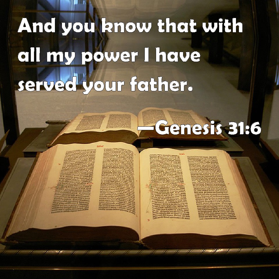 Genesis 31:6 And you know that with all my power I have served your father.