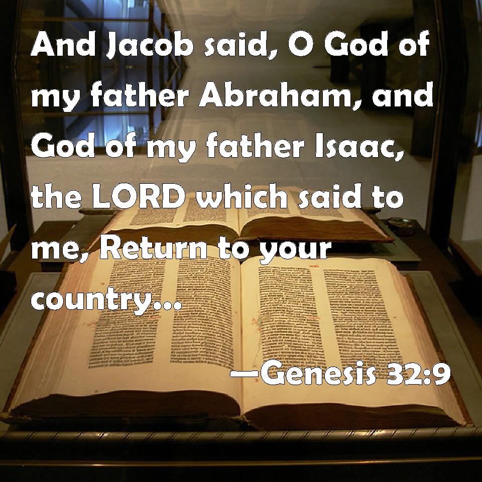 Choose a Background Genesis 32:9 And Jacob said, O God of my father Abraham, and God of my father Isaac, the LORD which said to me, Return to your country, and to your kindred, and I will deal well with you: KJV: And Jacob said, O God of my father Abraham, and God of my father Isaac, the LORD which saidst unto me, Return unto thy country, and to thy kindred, and I will deal well with thee: DRB: And Jacob said: O God of my father Abraham, and God of my father Isaac, O Lord, who saidst to me: Return to thy land and to the place of thy birth, and I will do well for thee, DBT: And Jacob said, God of my father Abraham, and God of my father Isaac, Jehovah, who saidst unto me: Return into thy country and to thy kindred, and I will do thee good, ERV: And Jacob said, O God of my father Abraham, and God of my father Isaac, O LORD, which saidst unto me, Return unto thy country, and to thy kindred, and I will do thee good: WBT: And Jacob said, O God of my father Abraham, and God of my father Isaac, the LORD who saidst to me, Return to thy country, and to thy kindred, and I will deal well with thee; WEB: Jacob said, "God of my father Abraham, and God of my father Isaac, Yahweh, who said to me, 'Return to your country, and to your relatives, and I will do you good,' YLT: And Jacob saith, 'God of my father Abraham, and God of my father Isaac, Jehovah who saith unto me, Turn back to thy land, and to thy kindred, and I do good with thee:Links Genesis 32:9 NIV • Genesis 32:9 NLT • Genesis 32:9 ESV • Genesis 32:9 NASB • Genesis 32:9 KJV • Genesis 32:9 Interlinear • Genesis 32:9 Commentaries • Genesis 32:9 Parallel Texts • Genesis 32:9 Bible Apps • Genesis 32:9 Parallel • Bible Hub |