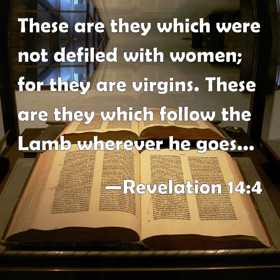These are they which were not defiled with women; for they are virgins. These are they which follow the Lamb whithersoever he goeth. These were redeemed from among men,