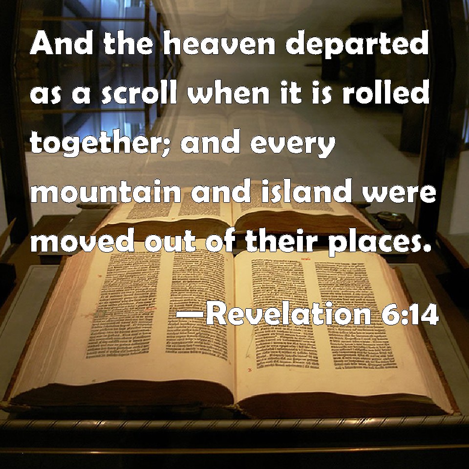 Revelation 6:14 And the heaven departed as a scroll when it is rolled together; and every mountain and island were moved out of their places.