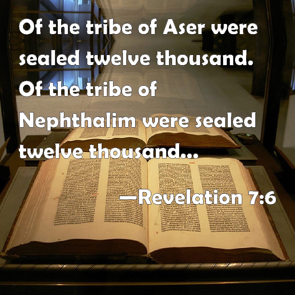 Revelation 7:6 Of the tribe of Aser were sealed twelve thousand. Of the tribe of Nephthalim were sealed twelve thousand. Of the tribe of Manasses were sealed twelve thousand.