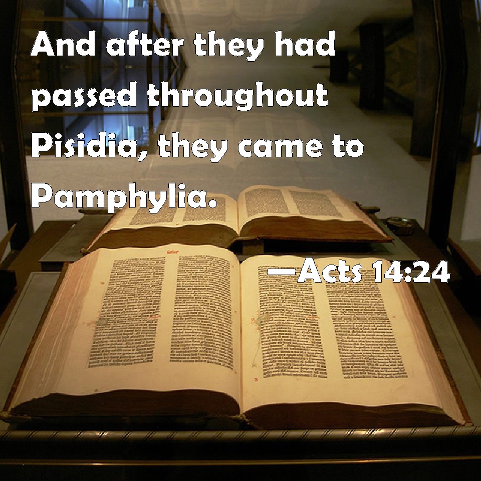 Acts 14:24 And after they had passed throughout Pisidia, they came to Pamphylia.
