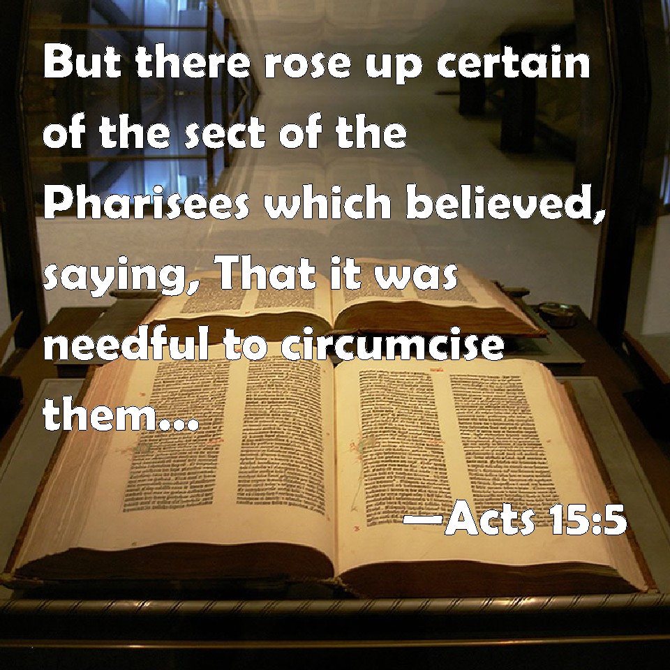 Choose a Background Acts 15:5 But there rose up certain of the sect of the Pharisees which believed, saying, That it was needful to circumcise them, and to command them to keep the law of Moses. KJV: But there rose up certain of the sect of the Pharisees which believed, saying, That it was needful to circumcise them, and to command them to keep the law of Moses. DRB: But there arose some of the sect of the Pharisees that believed, saying: They must be circumcised, and be commanded to observe the law of Moses. DBT: And some of those who were of the sect of the Pharisees, who believed, rose up from among them, saying that they ought to circumcise them and enjoin them to keep the law of Moses. ERV: But there rose up certain of the sect of the Pharisees who believed, saying, It is needful to circumcise them, and to charge them to keep the law of Moses. WBT: But there rose certain of the sect of the Pharisees, who believed, saying, That it was needful to circumcise them, and to command them to keep the law of Moses. WEB: But some of the sect of the Pharisees who believed rose up, saying, "It is necessary to circumcise them, and to command them to keep the law of Moses." YLT: and there rose up certain of those of the sect of the Pharisees who believed, saying — 'It behoveth to circumcise them, to command them also to keep the law of Moses.'Links Acts 15:5 NIV • Acts 15:5 NLT • Acts 15:5 ESV • Acts 15:5 NASB • Acts 15:5 KJV • Acts 15:5 Interlinear • Acts 15:5 Commentaries • Acts 15:5 Parallel Texts • Acts 15:5 Bible Apps • Acts 15:5 Parallel • Bible Hub |