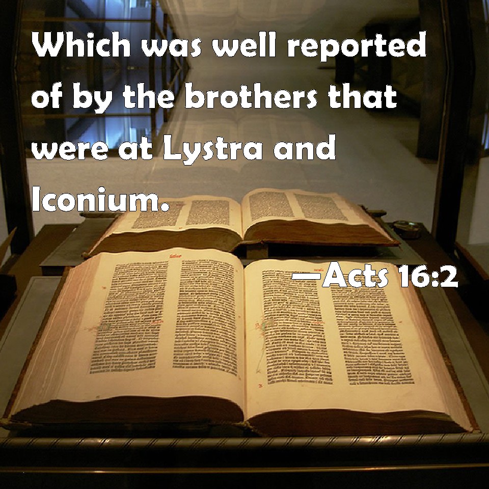 Acts 16:2 Which was well reported of by the brothers that were at Lystra and Iconium.