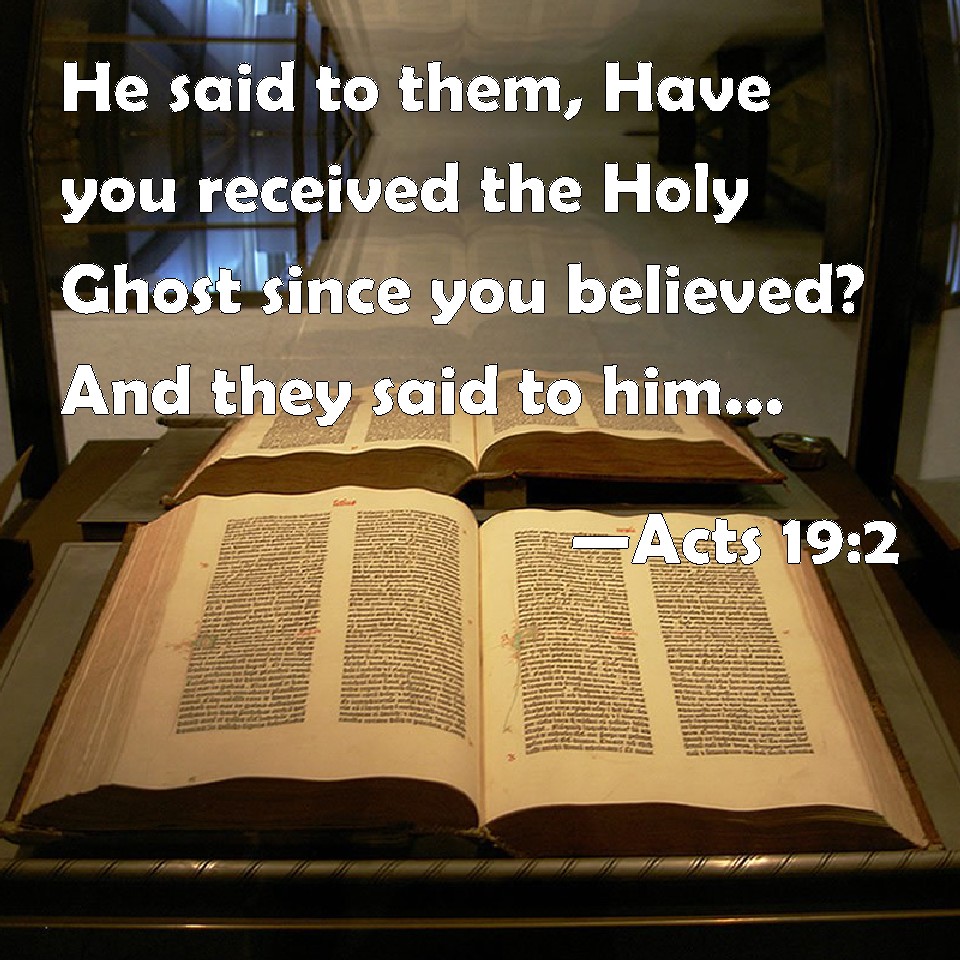 Choose a Background Acts 19:2 He said to them, Have you received the Holy Ghost since you believed? And they said to him, We have not so much as heard whether there be any Holy Ghost. KJV: He said unto them, Have ye received the Holy Ghost since ye believed? And they said unto him, We have not so much as heard whether there be any Holy Ghost. DRB: And he said to them: Have you received the Holy Ghost since ye believed? But they said to him: We have not so much as heard whether there be a Holy Ghost. DBT: he said to them, Did ye receive the Holy Spirit when ye had believed? And they said to him, We did not even hear if the Holy Spirit was come. ERV: and he said unto them, Did ye receive the Holy Ghost when ye believed? And they said unto him, Nay, we did not so much as hear whether the Holy Ghost was given. WBT: He said to them, Have ye received the Holy Spirit since ye believed? And they said to him, We have not so much as heard whether there is any Holy Spirit. WEB: He said to them, "Did you receive the Holy Spirit when you believed?" They said to him, "No, we haven't even heard that there is a Holy Spirit." YLT: he said unto them, 'The Holy Spirit did ye receive — having believed?' and they said unto him, 'But we did not even hear whether there is any Holy Spirit;'Links Acts 19:2 NIV • Acts 19:2 NLT • Acts 19:2 ESV • Acts 19:2 NASB • Acts 19:2 KJV • Acts 19:2 Interlinear • Acts 19:2 Commentaries • Acts 19:2 Parallel Texts • Acts 19:2 Bible Apps • Acts 19:2 Parallel • Bible Hub |