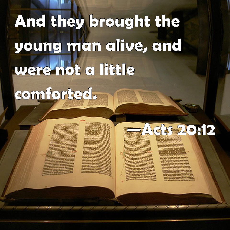 Acts 20:12 And they brought the young man alive, and were not a little comforted.