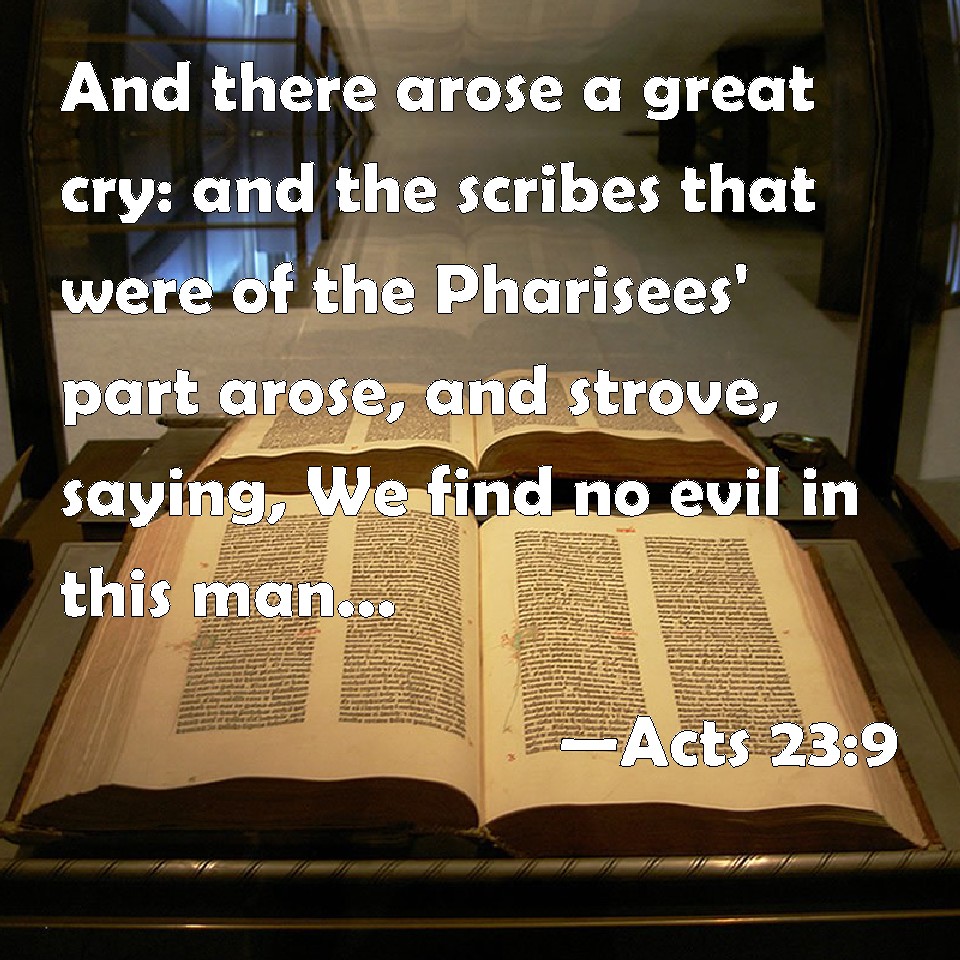 Acts 23:9 And there arose a great cry: and the scribes that were of the Pharisees' part arose, and strove, saying, We find no evil in this man: but if a spirit or an angel has spoken to him, let us not fight against God.