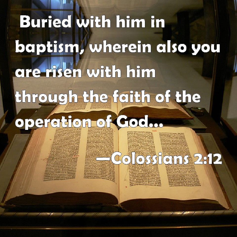 Choose a Background Colossians 2:12 Buried with him in baptism, wherein also you are risen with him through the faith of the operation of God, who has raised him from the dead. KJV: Buried with him in baptism, wherein also ye are risen with him through the faith of the operation of God, who hath raised him from the dead. DRB: Buried with him in baptism, in whom also you are risen again by the faith of the operation of God, who hath raised him up from the dead. DBT: buried with him in baptism, in which ye have been also raised with him through faith of the working of God who raised him from among the dead. ERV: having been buried with him in baptism, wherein ye were also raised with him through faith in the working of God, who raised him from the dead. WBT: Buried with him in baptism, in which also ye are raised with him through the faith of the operation of God, who hath raised him from the dead. WEB: having been buried with him in baptism, in which you were also raised with him through faith in the working of God, who raised him from the dead. YLT: being buried with him in the baptism, in which also ye rose with him through the faith of the working of God, who did raise him out of the dead.Links Colossians 2:12 NIV • Colossians 2:12 NLT • Colossians 2:12 ESV • Colossians 2:12 NASB • Colossians 2:12 KJV • Colossians 2:12 Interlinear • Colossians 2:12 Commentaries • Colossians 2:12 Parallel Texts • Colossians 2:12 Bible Apps • Colossians 2:12 Parallel • Bible Hub |