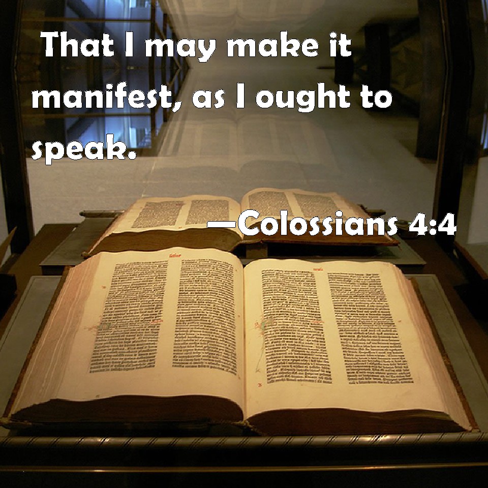 Colossians 4:4 That I may make it manifest, as I ought to speak.
