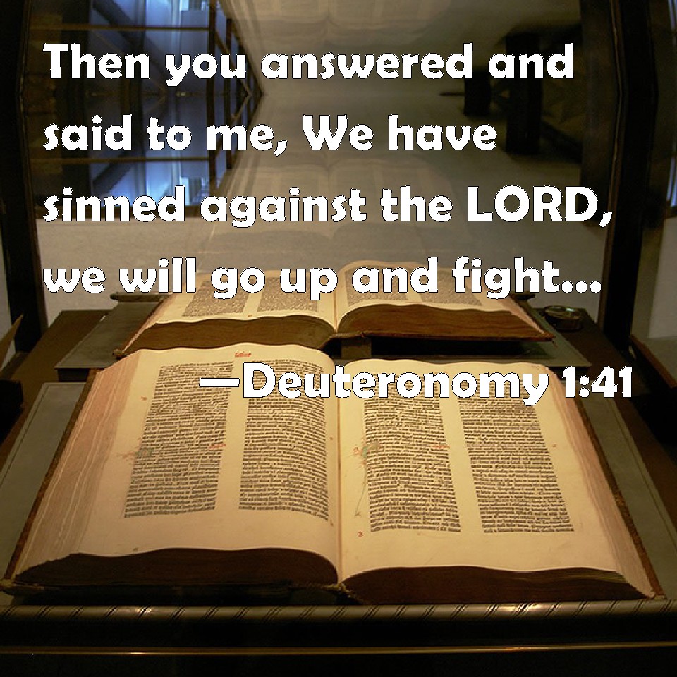 Choose a Background Deuteronomy 1:41 Then you answered and said to me, We have sinned against the LORD, we will go up and fight, according to all that the LORD our God commanded us. And when you had girded on every man his weapons of war, you were ready to go up into the hill. KJV: Then ye answered and said unto me, We have sinned against the LORD, we will go up and fight, according to all that the LORD our God commanded us. And when ye had girded on every man his weapons of war, ye were ready to go up into the hill. DRB: And you answered me: We have sinned against the Lord: we will go up and fight, as the Lord our God hath commanded. And when you went ready armed unto the mountain, DBT: And ye answered And said unto me, We have sinned against Jehovah, We will go up And fight, according to all that Jehovah our God hath commanded us. And ye girded on Every man his weapons of war, And ye would go presumptuously up the hill. ERV: Then ye answered and said unto me, We have sinned against the LORD, we will go up and fight, according to all that the LORD our God commanded us. And ye girded on every man his weapons of war, and were forward to go up into the mountain. WBT: Then ye answered and said to me, We have sinned against the LORD, we will go up and fight, according to all that the LORD our God commanded us. And when ye had girded on every man his weapons of war, ye were ready to ascend the hill. WEB: Then you answered and said to me, "We have sinned against Yahweh, we will go up and fight, according to all that Yahweh our God commanded us." Every man of you put on his weapons of war, and presumed to go up into the hill country. YLT: And ye answer and say unto me, We have sinned against Jehovah; we — we go up, and we have fought, according to all that which Jehovah our God hath commanded us; and ye gird on each his weapons of war, and ye are ready to go up into the hill-country;Links Deuteronomy 1:41 NIV • Deuteronomy 1:41 NLT • Deuteronomy 1:41 ESV • Deuteronomy 1:41 NASB • Deuteronomy 1:41 KJV • Deuteronomy 1:41 Interlinear • Deuteronomy 1:41 Commentaries • Deuteronomy 1:41 Parallel Texts • Deuteronomy 1:41 Bible Apps • Deuteronomy 1:41 Parallel • Bible Hub |
