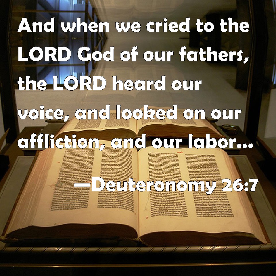 Deuteronomy 26:7 And when we cried to the LORD God of our fathers, the LORD heard our voice, and looked on our affliction, and our labor, and our oppression: