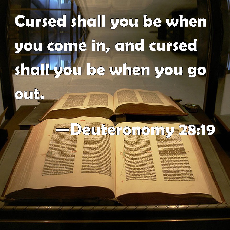 Deuteronomy 28:19 Cursed shall you be when you come in, and cursed shall you be when you go out.