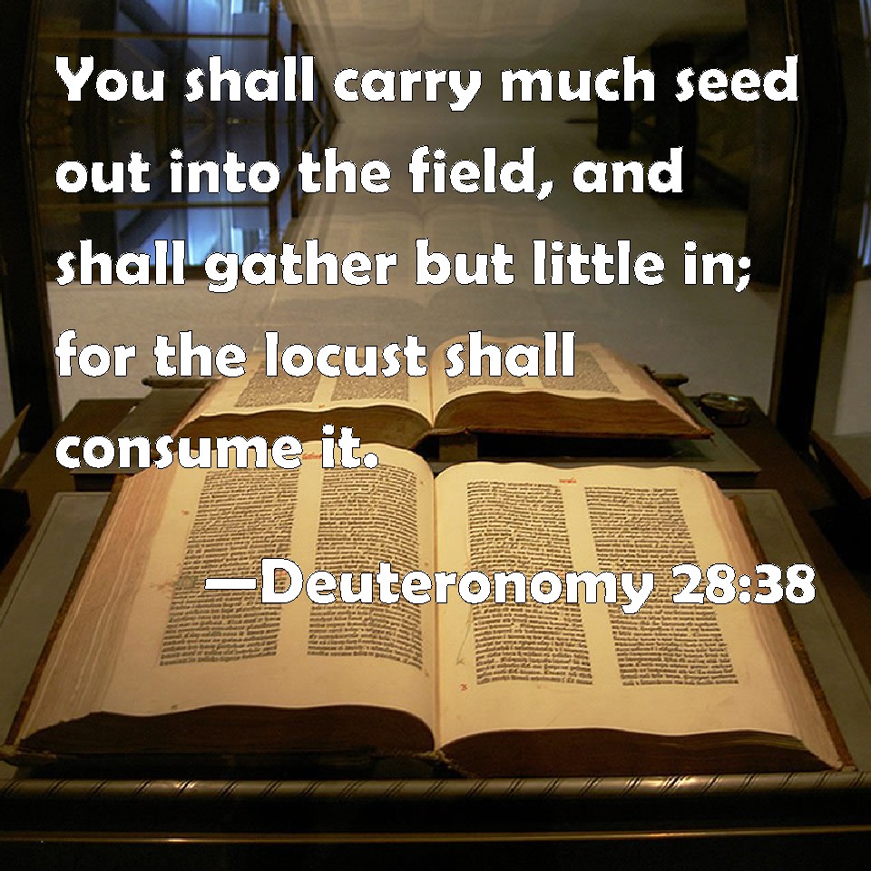 Thou shalt carry much seed into the field, and shalt gather but little: for the locust shall consume it.
