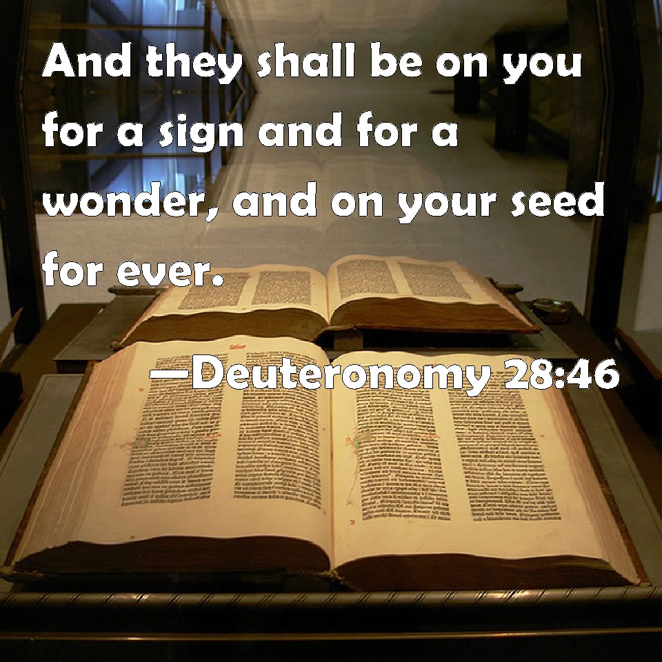 Deuteronomy 28:46 And they shall be on you for a sign and for a wonder, and on your seed for ever.