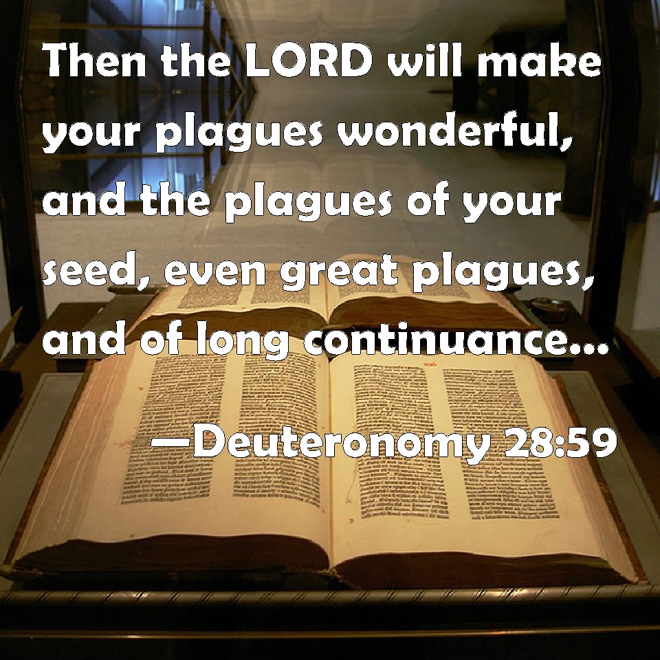 Deuteronomy 28:59 Then the LORD will make your plagues wonderful, and the plagues of your seed, even great plagues, and of long continuance, and sore sicknesses, and of long continuance.