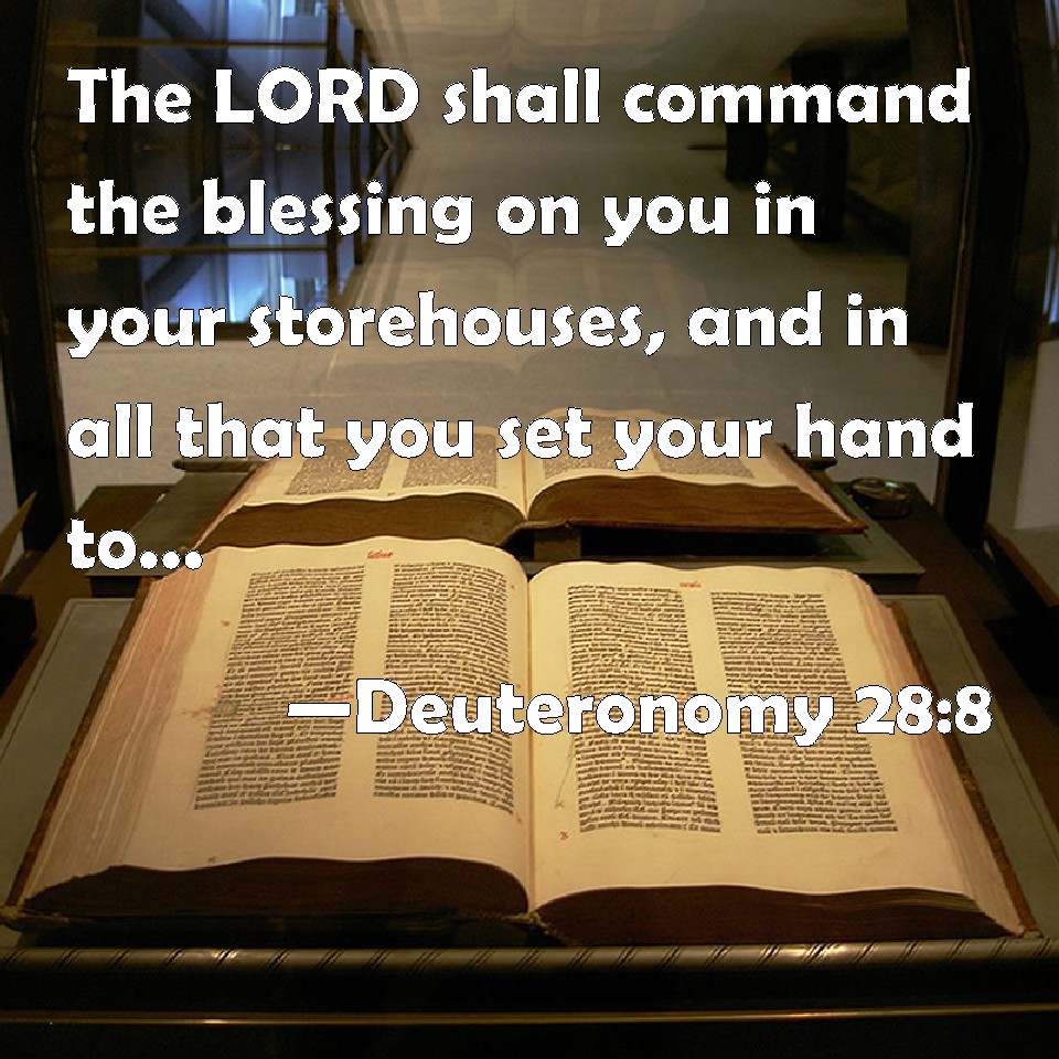 The LORD shall command the blessing upon thee in thy storehouses, and in all that thou settest thine hand unto; and he shall bless thee in the land which the LORD thy God giveth thee.