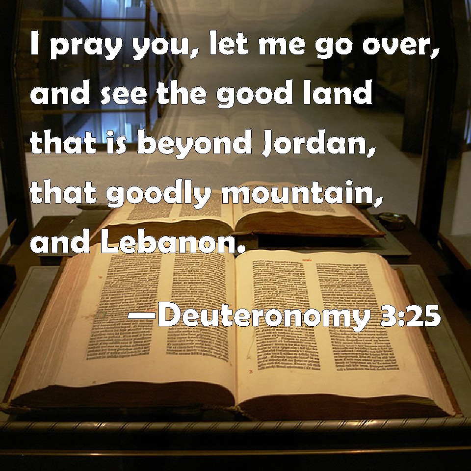 Choose a Background Deuteronomy 3:25 I pray you, let me go over, and see the good land that is beyond Jordan, that goodly mountain, and Lebanon. KJV: I pray thee, let me go over, and see the good land that is beyond Jordan, that goodly mountain, and Lebanon. DRB: I will pass over therefore, and will see this excellent land beyond the Jordan, and this goodly mountain, and Libanus. DBT: Let me go over, I pray thee, and see the good land that is beyond the Jordan, that goodly mountain, and Lebanon. ERV: Let me go over, I pray thee, and see the good land that is beyond Jordan, that goodly mountain, and Lebanon. WBT: I pray thee, let me go over, and see the good land that is beyond Jordan, that goodly mountain, and Lebanon. WEB: Please let me go over and see the good land that is beyond the Jordan, that goodly mountain, and Lebanon." YLT: Let me pass over, I pray Thee, and see the good land which is beyond the Jordan, this good hill-country, and Lebanon.Links Deuteronomy 3:25 NIV • Deuteronomy 3:25 NLT • Deuteronomy 3:25 ESV • Deuteronomy 3:25 NASB • Deuteronomy 3:25 KJV • Deuteronomy 3:25 Interlinear • Deuteronomy 3:25 Commentaries • Deuteronomy 3:25 Parallel Texts • Deuteronomy 3:25 Bible Apps • Deuteronomy 3:25 Parallel • Bible Hub |