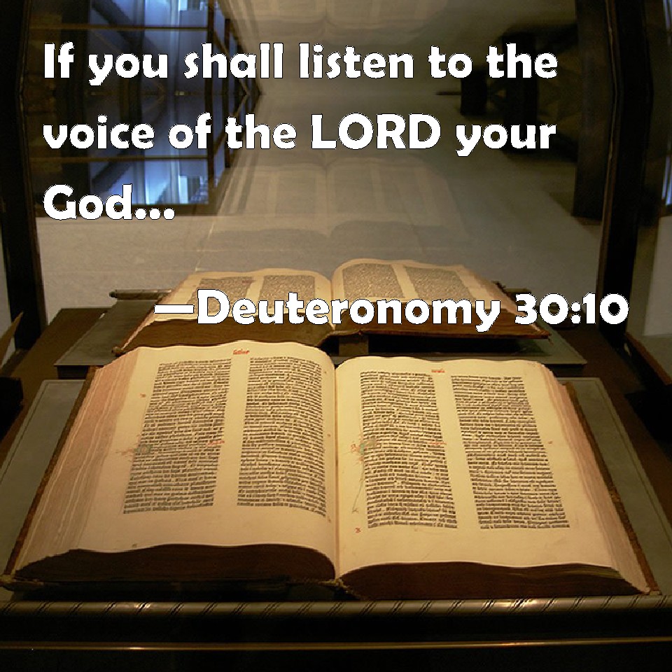 Choose a Background Deuteronomy 30:10 If you shall listen to the voice of the LORD your God, to keep his commandments and his statutes which are written in this book of the law, and if you turn to the LORD your God with all your heart, and with all your soul. KJV: If thou shalt hearken unto the voice of the LORD thy God, to keep his commandments and his statutes which are written in this book of the law, and if thou turn unto the LORD thy God with all thine heart, and with all thy soul. DRB: Yet so if thou hear the voice of the Lord thy God, and keep his precepts and ceremonies, which are written in this law: and return to the Lord thy God with all thy heart, and with all thy soul. DBT: if thou shalt hearken unto the voice of Jehovah thy God, to keep his commandments and his statutes which are written in this book of the law; if thou turn to Jehovah thy God with all thy heart and with all thy soul. ERV: if thou shalt obey the voice of the LORD thy God, to keep his commandments and his statutes which are written in this book of the law; if thou turn unto the LORD thy God with all thine heart, and with all thy soul. WBT: If thou shalt hearken to the voice of the LORD thy God, to keep his commandments and his statutes which are written in this book of the law, and if thou shalt turn to the LORD thy God with all thy heart and with all thy soul. WEB: if you shall obey the voice of Yahweh your God, to keep his commandments and his statutes which are written in this book of the law; if you turn to Yahweh your God with all your heart, and with all your soul. YLT: for thou dost hearken to the voice of Jehovah thy God, to keep His commands, and His statutes, which are written in the book of this law, for thou turnest back unto Jehovah thy God, with all thy heart, and with all thy soul.Links Deuteronomy 30:10 NIV • Deuteronomy 30:10 NLT • Deuteronomy 30:10 ESV • Deuteronomy 30:10 NASB • Deuteronomy 30:10 KJV • Deuteronomy 30:10 Interlinear • Deuteronomy 30:10 Commentaries • Deuteronomy 30:10 Parallel Texts • Deuteronomy 30:10 Bible Apps • Deuteronomy 30:10 Parallel • Bible Hub |