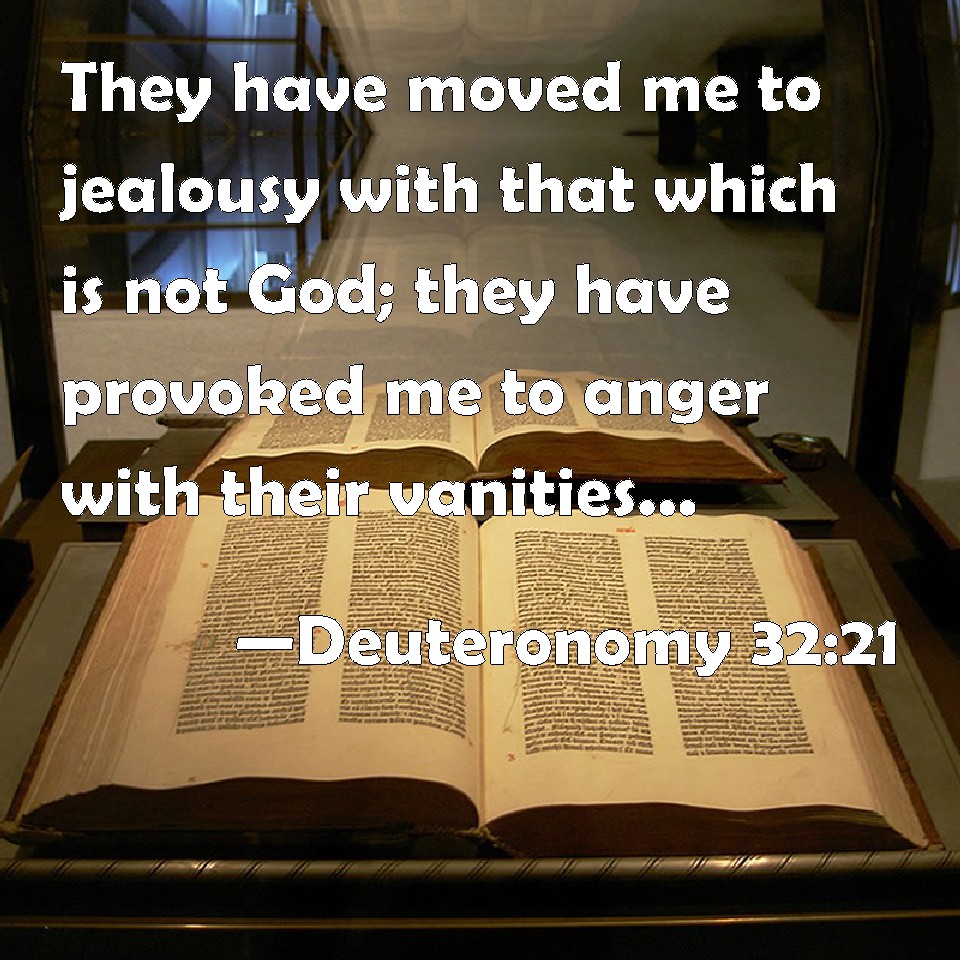 They have moved me to jealousy with that which is not God; They have provoked me to anger with their vanities: And I will move them to jealousy with those which are not a people; I will provoke them to anger with a foolish nation.