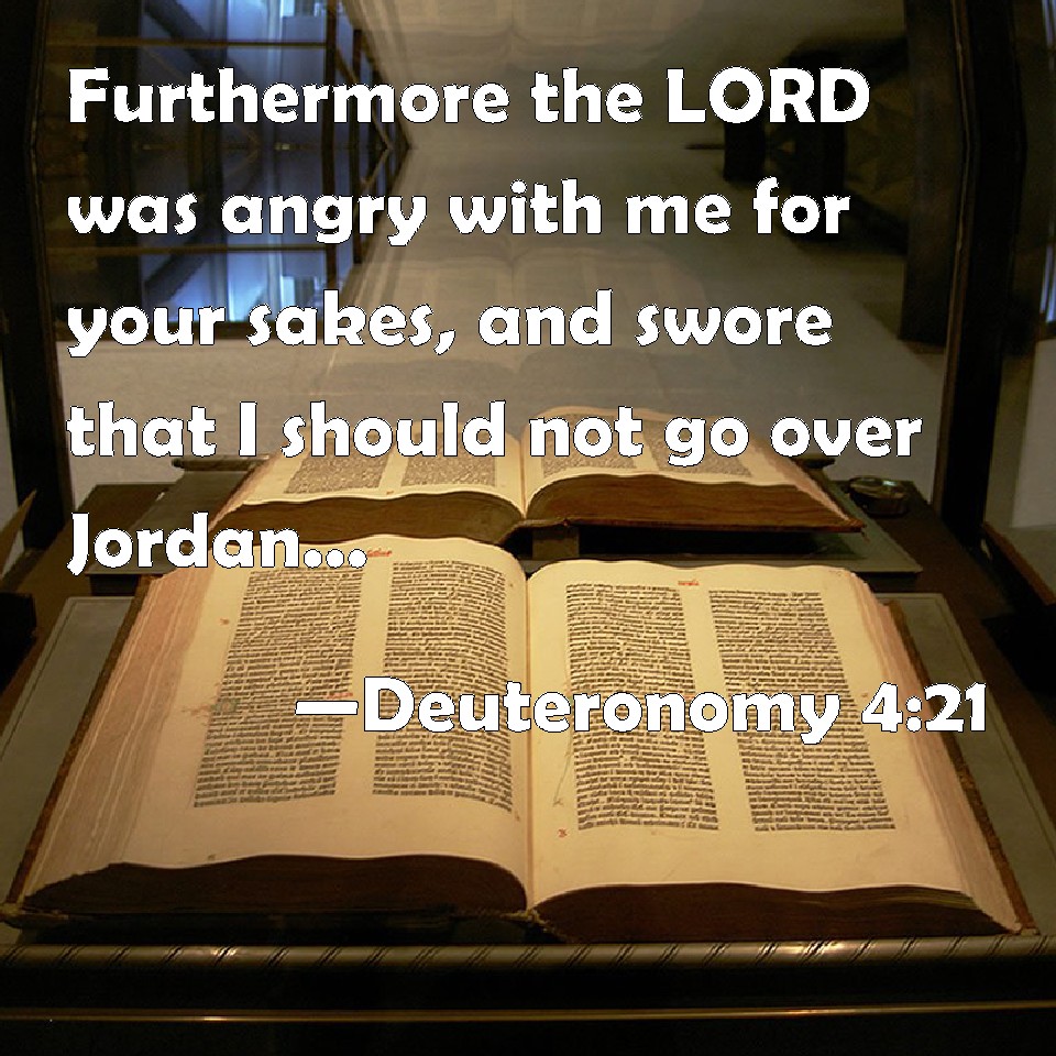 Choose a Background Deuteronomy 4:21 Furthermore the LORD was angry with me for your sakes, and swore that I should not go over Jordan, and that I should not go in to that good land, which the LORD your God gives you for an inheritance: KJV: Furthermore the LORD was angry with me for your sakes, and sware that I should not go over Jordan, and that I should not go in unto that good land, which the LORD thy God giveth thee for an inheritance: DRB: And the Lord was angry with me for your words, and he swore that I should not pass over the Jordan, nor enter into the excellent land, which he will give you. DBT: And Jehovah was angry with me on your account, and swore that I should not go over the Jordan, and that I should not enter in to that good land which Jehovah thy God giveth thee for an inheritance; ERV: Furthermore the LORD was angry with me for your sakes, and sware that I should not go over Jordan, and that I should not go in unto that good land, which the LORD thy God giveth thee for an inheritance: WBT: Furthermore the LORD was angry with me for your sakes, and swore that I should not go over Jordan, and that I should not enter that good land which the LORD thy God giveth thee for an inheritance: WEB: Furthermore Yahweh was angry with me for your sakes, and swore that I should not go over the Jordan, and that I should not go in to that good land, which Yahweh your God gives you for an inheritance: YLT: And Jehovah hath shewed himself wroth with me because of your words, and sweareth to my not passing over the Jordan, and to my not going in unto the good land which Jehovah thy God is giving to thee — an inheritance;Links Deuteronomy 4:21 NIV • Deuteronomy 4:21 NLT • Deuteronomy 4:21 ESV • Deuteronomy 4:21 NASB • Deuteronomy 4:21 KJV • Deuteronomy 4:21 Interlinear • Deuteronomy 4:21 Commentaries • Deuteronomy 4:21 Parallel Texts • Deuteronomy 4:21 Bible Apps • Deuteronomy 4:21 Parallel • Bible Hub |