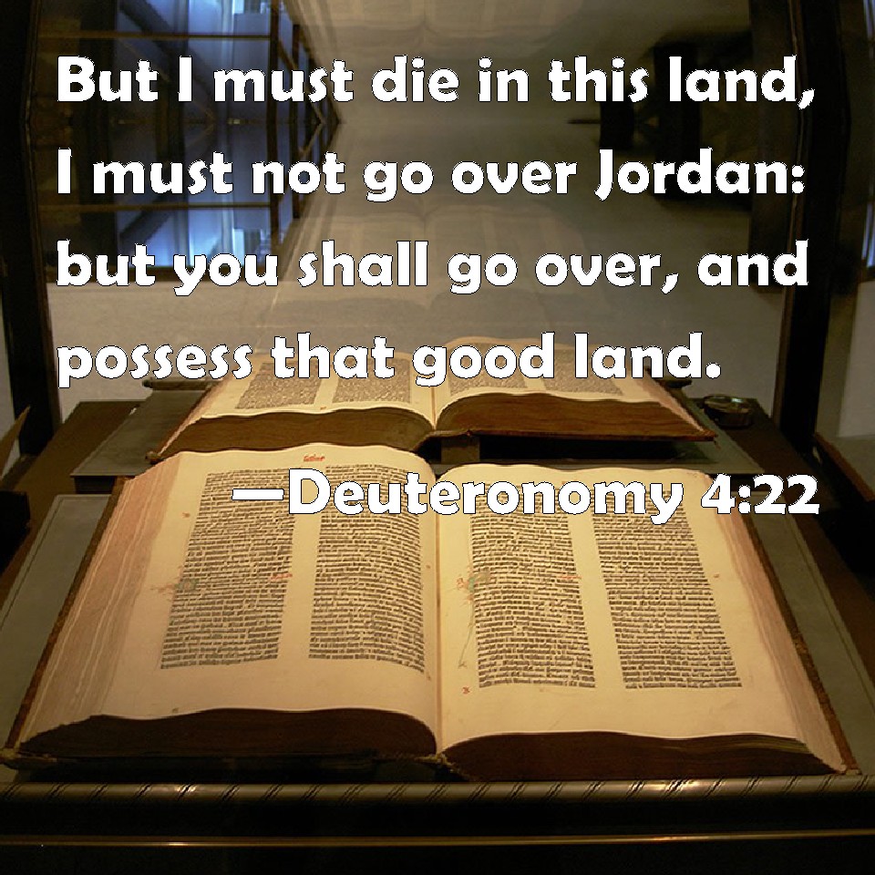 Choose a Background Deuteronomy 4:22 But I must die in this land, I must not go over Jordan: but you shall go over, and possess that good land. KJV: But I must die in this land, I must not go over Jordan: but ye shall go over, and possess that good land. DRB: Behold I die in this land, I shall not pass over the Jordan: you shall pass, and possess the goodly land. DBT: for I shall die in this land, I shall not go over the Jordan; but ye shall go over, and possess this good land. ERV: but I must die in this land, I must not go over Jordan: but ye shall go over, and possess that good land. WBT: But I must die in this land, I must not go over Jordan: but ye shall go over, and possess that good land. WEB: but I must die in this land, I must not go over the Jordan; but you shall go over, and possess that good land. YLT: for I am dying in this land; I am not passing over the Jordan, and ye are passing over, and have possessed this good land.Links Deuteronomy 4:22 NIV • Deuteronomy 4:22 NLT • Deuteronomy 4:22 ESV • Deuteronomy 4:22 NASB • Deuteronomy 4:22 KJV • Deuteronomy 4:22 Interlinear • Deuteronomy 4:22 Commentaries • Deuteronomy 4:22 Parallel Texts • Deuteronomy 4:22 Bible Apps • Deuteronomy 4:22 Parallel • Bible Hub |