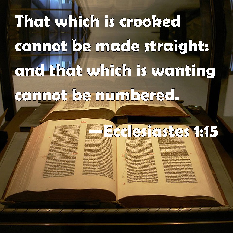 Ecclesiastes 1:15 That which is crooked cannot be made straight: and that which is wanting cannot be numbered.