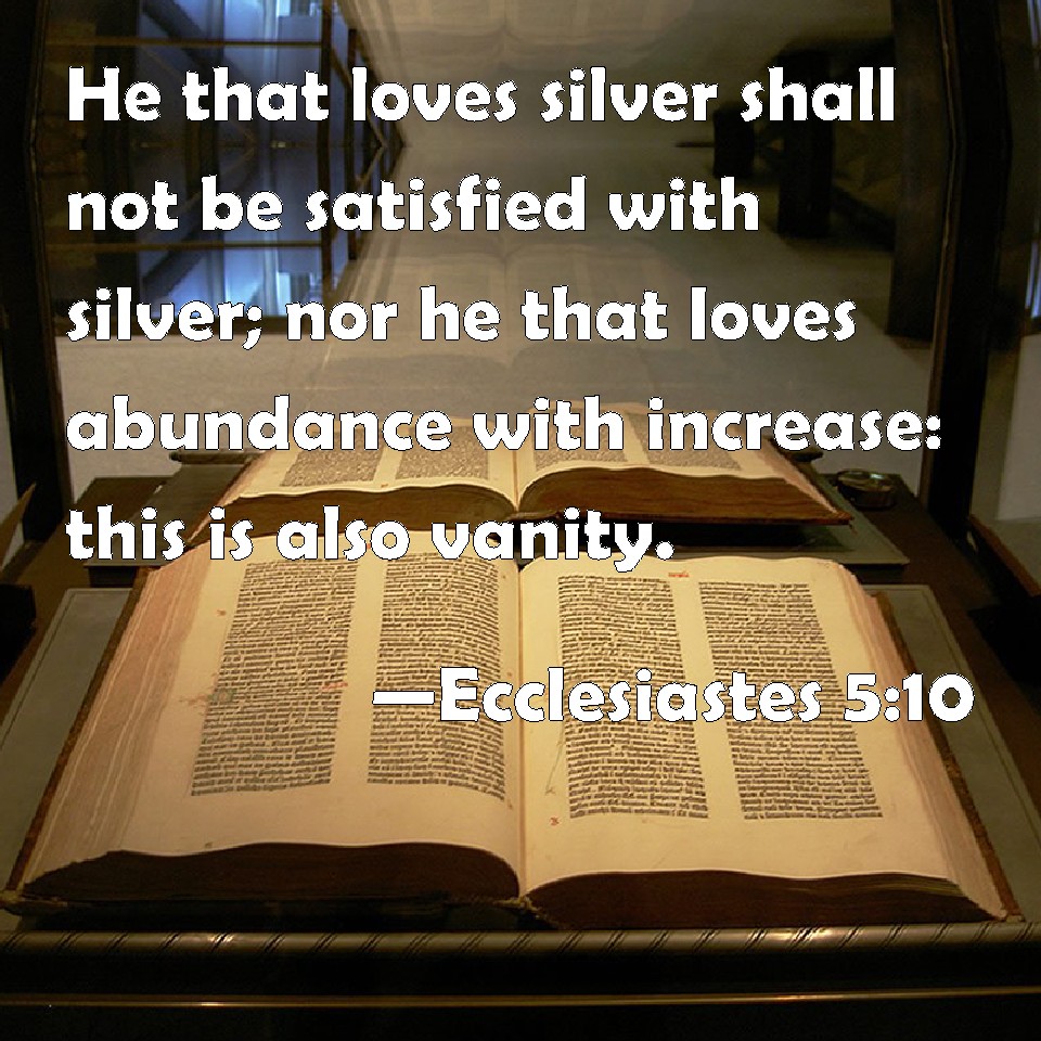Ecclesiastes 5:10 He that loves silver shall not be satisfied with silver; nor he that loves abundance with increase: this is also vanity.
