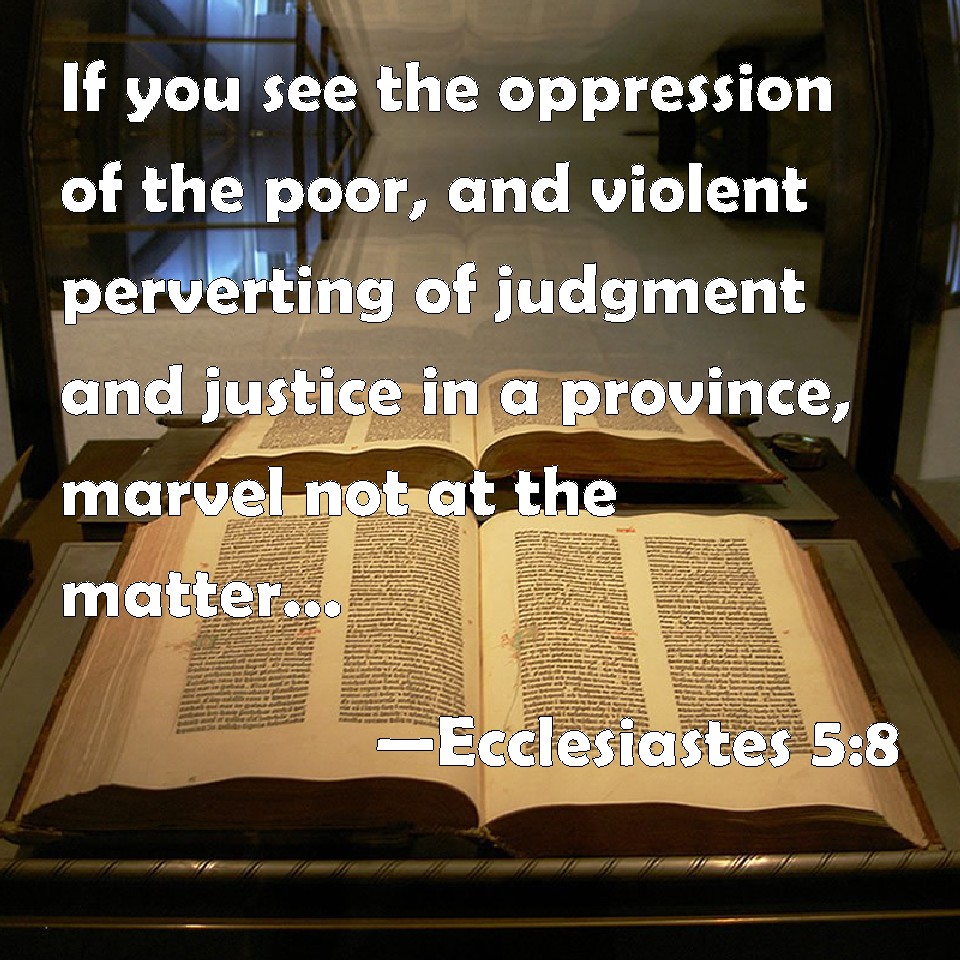 Ecclesiastes 5:8 If you see the oppression of the poor, and violent perverting of judgment and justice in a province, marvel not at the matter: for he that is higher than the highest regards; and there be higher than they.