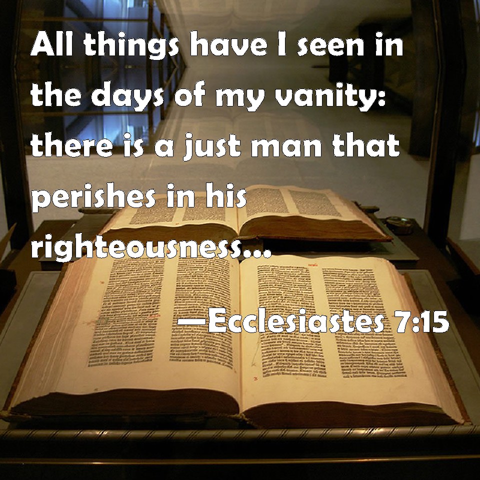All things have I seen in the days of my vanity: there is a just man that perisheth in his righteousness, and there is a wicked man that prolongeth his life in his wickedness.