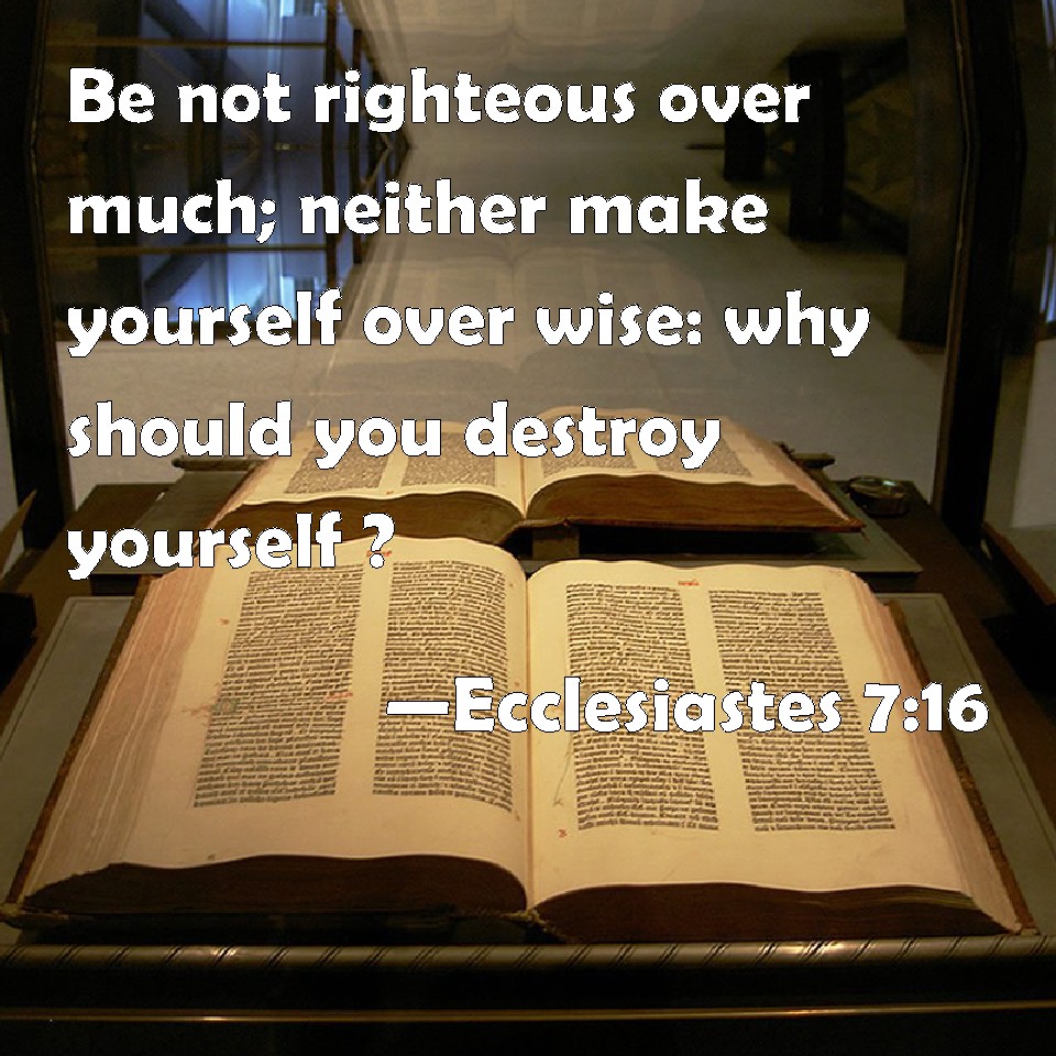Ecclesiastes 7:16 Be not righteous over much; neither make yourself over wise: why should you destroy yourself ?