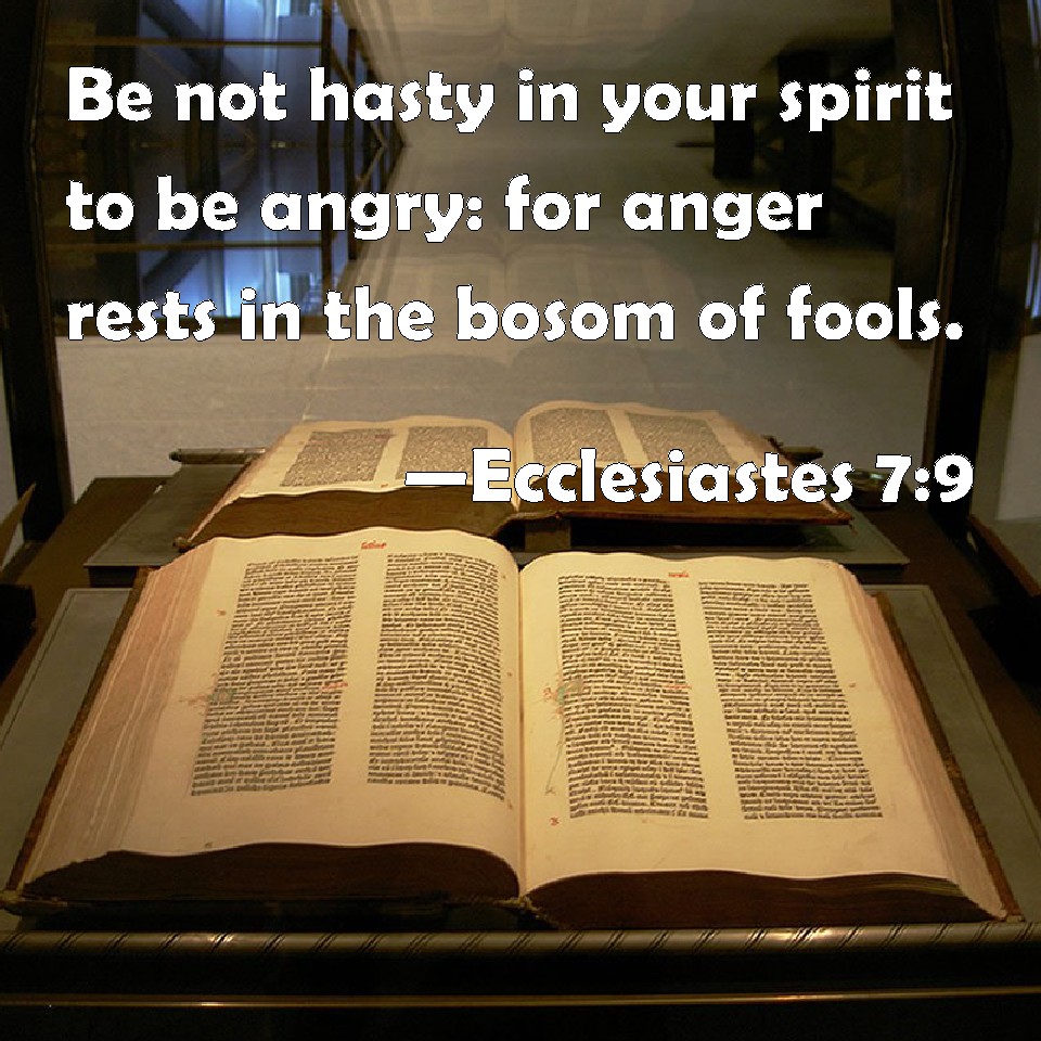 Be not hasty in thy spirit to be angry, For anger in the bosom of fools resteth.