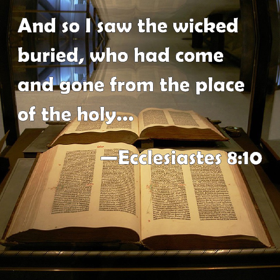 Choose a Background Ecclesiastes 8:10 And so I saw the wicked buried, who had come and gone from the place of the holy, and they were forgotten in the city where they had so done: this is also vanity. KJV: And so I saw the wicked buried, who had come and gone from the place of the holy, and they were forgotten in the city where they had so done: this is also vanity. DRB: I saw the wicked buried: who also when they were yet living were in the holy place, and were praised in the city as men of just works: but this also is vanity. DBT: And I have also seen the wicked buried and going away; and such as had acted rightly went from the holy place, and were forgotten in the city. This also is vanity. ERV: And withal I saw the wicked buried, and they came to the grave; and they that had done right went away from the holy place, and were forgotten in the city: this also is vanity. WBT: And so I saw the wicked buried, who had come and gone from the place of the holy, and they were forgotten in the city where they had so done: this is also vanity. WEB: So I saw the wicked buried. Indeed they came also from holiness. They went and were forgotten in the city where they did this. This also is vanity. YLT: And so I have seen the wicked buried, and they went in, even from the Holy Place they go, and they are forgotten in the city whether they had so done. This also is vanity.Links Ecclesiastes 8:10 NIV • Ecclesiastes 8:10 NLT • Ecclesiastes 8:10 ESV • Ecclesiastes 8:10 NASB • Ecclesiastes 8:10 KJV • Ecclesiastes 8:10 Interlinear • Ecclesiastes 8:10 Commentaries • Ecclesiastes 8:10 Parallel Texts • Ecclesiastes 8:10 Bible Apps • Ecclesiastes 8:10 Parallel • Bible Hub |