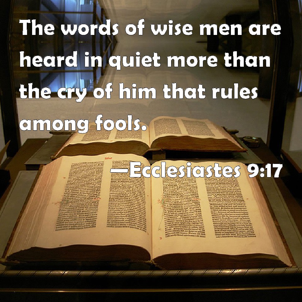 Ecclesiastes 9:17 The words of wise men are heard in quiet more than the cry of him that rules among fools.