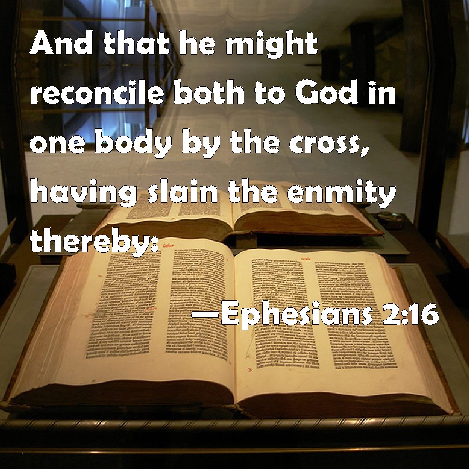 Ephesians 2:16 And that he might reconcile both to God in one body by the cross, having slain the enmity thereby: